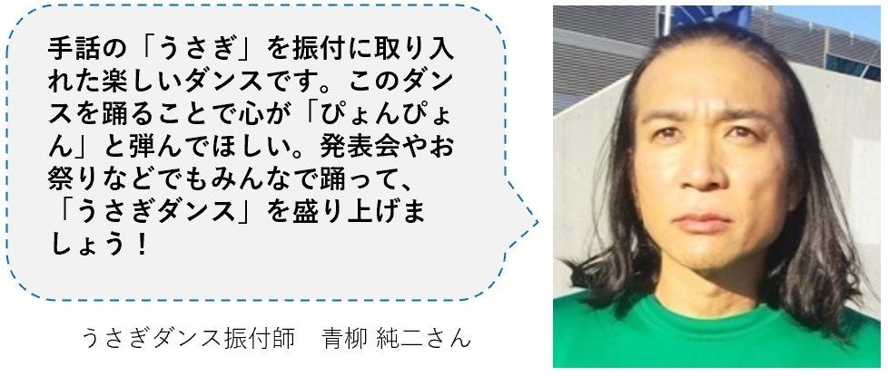 両手を頭の上に持ってくるものや、手をちょこんと前に出す “うさぎポーズ” と、ピョンと跳ねるステップが印象的な「うさぎダンス」。曲は鳥取県出身の作曲家・田村虎蔵氏の童謡「だいこくさま」を使用したアレンジ曲と、思わず踊り出したくなる「うさぎダンス」オリジナル曲の2曲です。