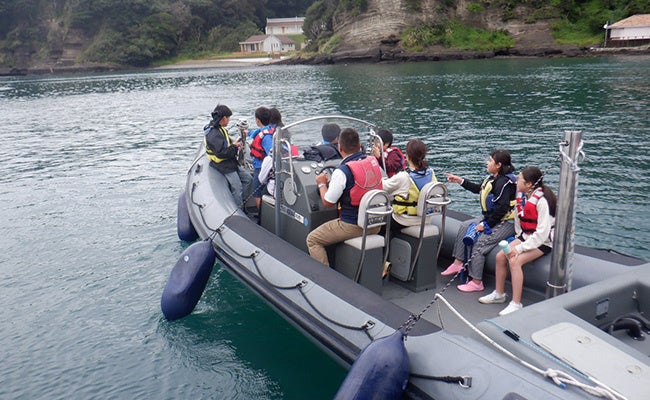 穏やかな小網代湾をボートに乗りクルージング。小網代の森や地形を海から見て、環境を学ぼう。