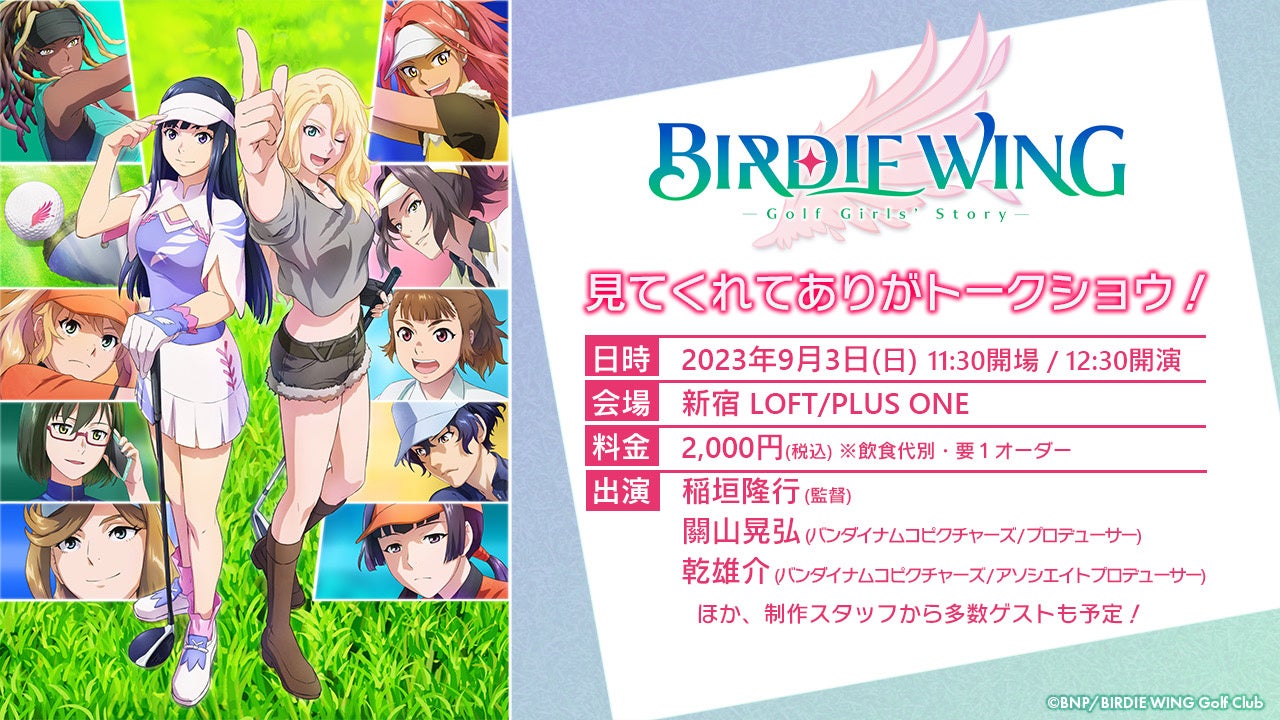 株式会社バンダイナムコピクチャーズ(本社:東京都杉並区、代表取締役社長:佐藤弘幸)は、2023年4月~6月にテレビ東京ほかで放送された、女子ゴルフを題材としたオリジナルTVアニメ『BIRDIE WING -Golf Girls’ Story-』のスタッフトークショウイベントの開催を発表いたしました。
