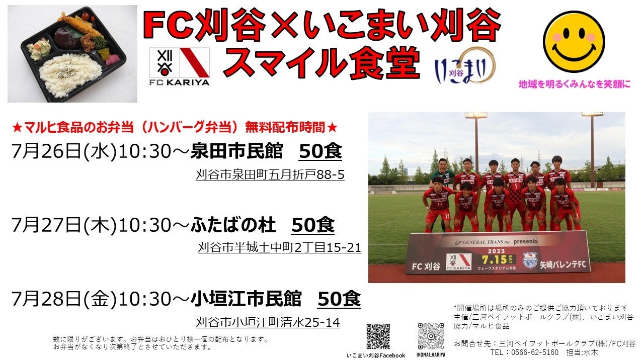 7月26日(水)~28日(金)に刈谷市泉田町・半城土・小垣江町にてお弁当(ハンバーグ弁当)配布会を実施のお知らせいたします。