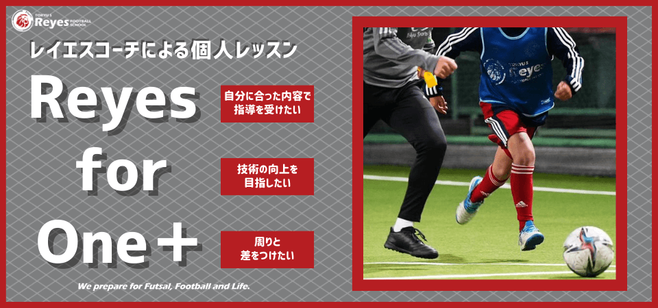 日頃のスクール活動とは異なり、東急Sレイエス フットボールスクールメインコーチとの1対1でのマンツーマンレッスンを行います。選手の課題やお悩みに合わせて、ご要望に沿ったトレーニングをご提供いたします。