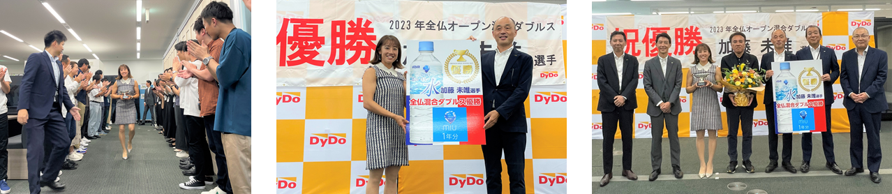 ダイドードリンコ株式会社(本社:大阪市北区、代表取締役社長:中島 孝徳 以下、当社)とスポンサーシップ契約をしているプロテニスプレーヤーの加藤 未唯(みゆ)選手(以下、加藤選手)が、5月28日~6月11日にかけて開催された全仏オープンの混合ダブルスで見事優勝され、7月25日に当社を訪問されました。