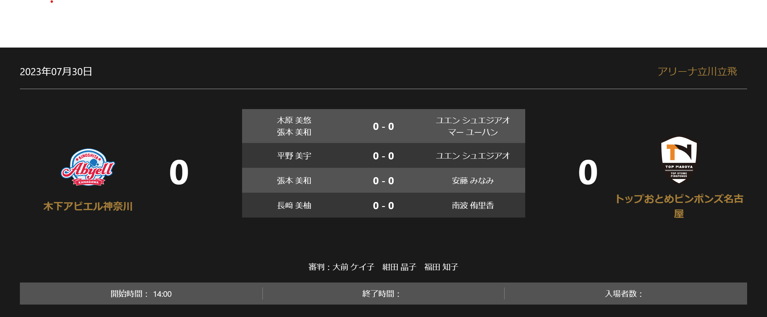 ホームプレスリリース ノジマTリーグ2023-2024シーズン公式戦 7月30日(日)14:00試合開始 木下アビエル神奈川 vs トップおとめピンポンズ名古屋 対戦オーダー発表 2023年07月30日 13時06分 公開|スポーツマニア編集部プレスリリース 一般社団法人Tリーグのプレスリリース ノジマTリーグ 2023-2024シーズン公式戦7月30日(日)14:00試合開始 試合会場 アリーナ立川立飛木下アビエル神奈川 vs トップおとめピンポンズ名古屋の対戦オーダーが発表されました。