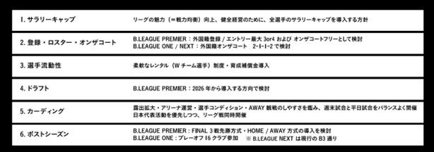 バスケ界全体を底上げし、サスティナブルな健全経営、観客数アップを図る6つの制度