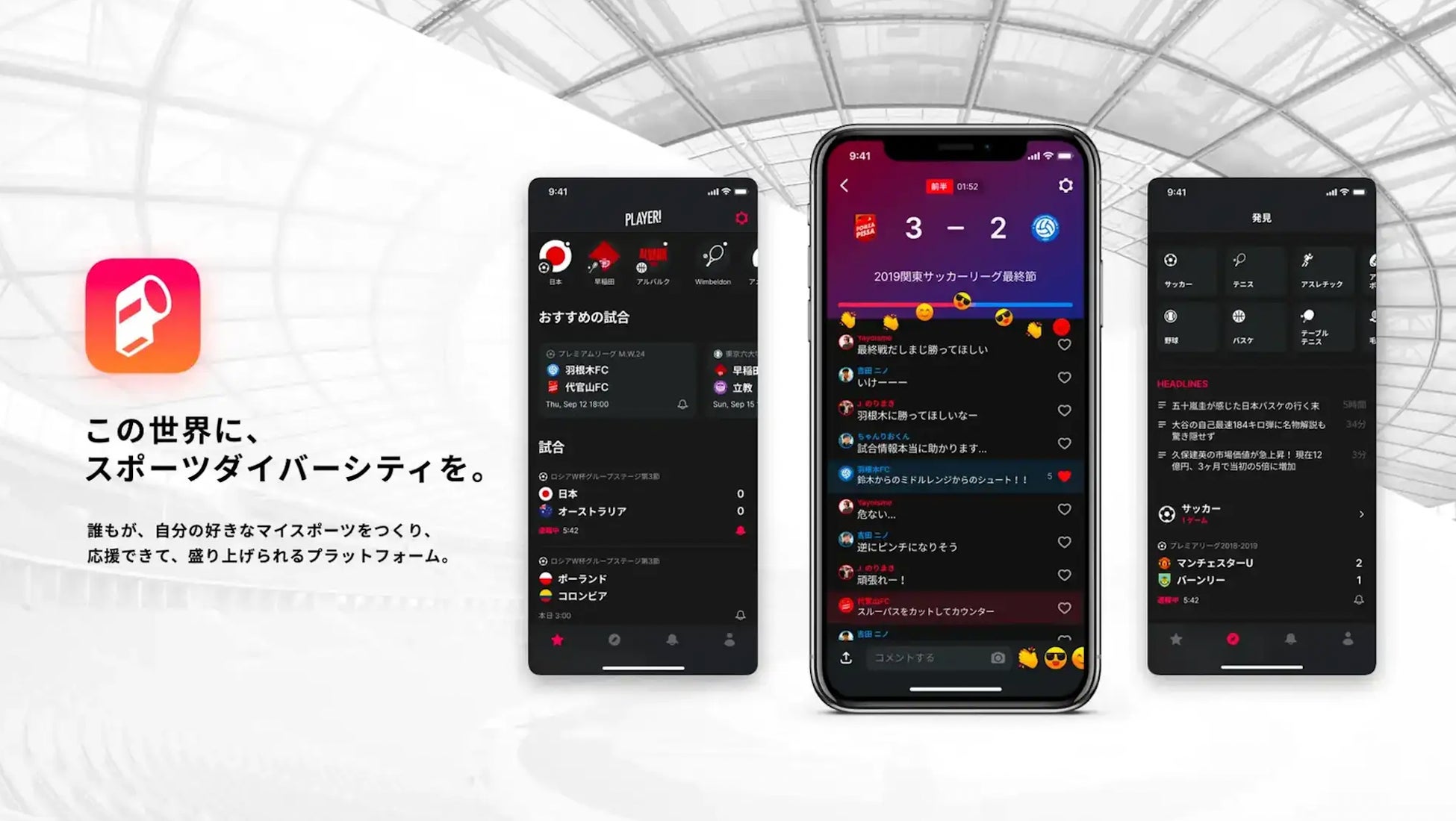 Player!は、誰もが、自分の好きなマイスポーツをつくり、応援できて、盛り上げられるプラットフォームです。