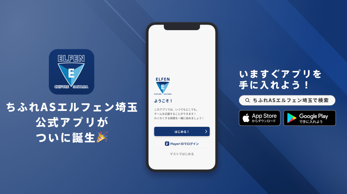 AppStoreもしくはGooglePlayで「ちふれASエルフェン埼玉」と検索!