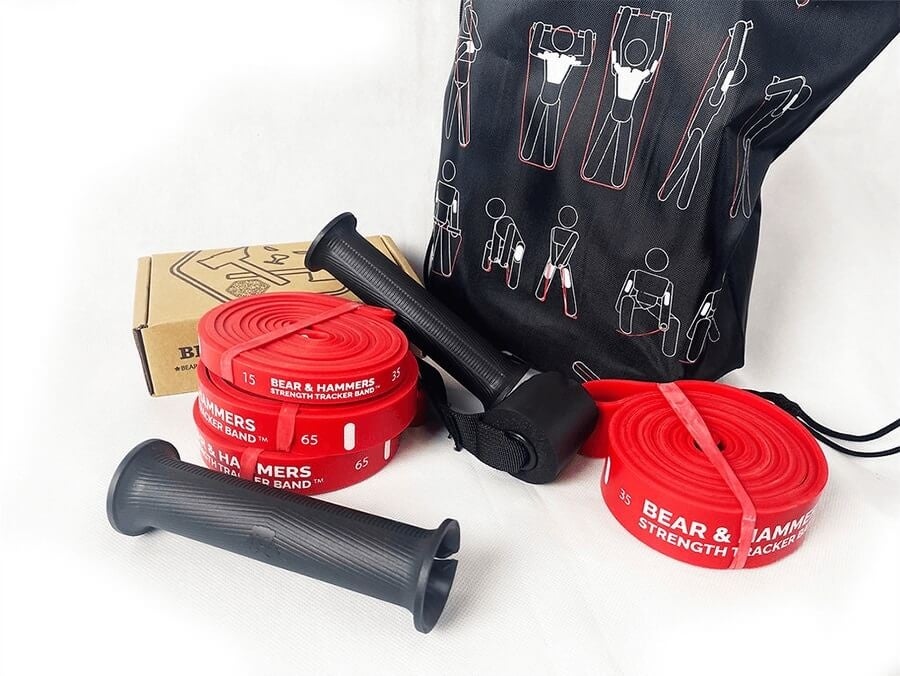 【A】レジスタンスバンドセットをご購入いただいた場合、強度の異なる複数の組み合わせが可能となるため、上半身から下半身までまんべんなく鍛えることが可能です。また、セットでご購入いただいた場合、ドアアタッチメントやワークアウトバッグも付属しておりますのでより幅広いエクササイズが可能です。