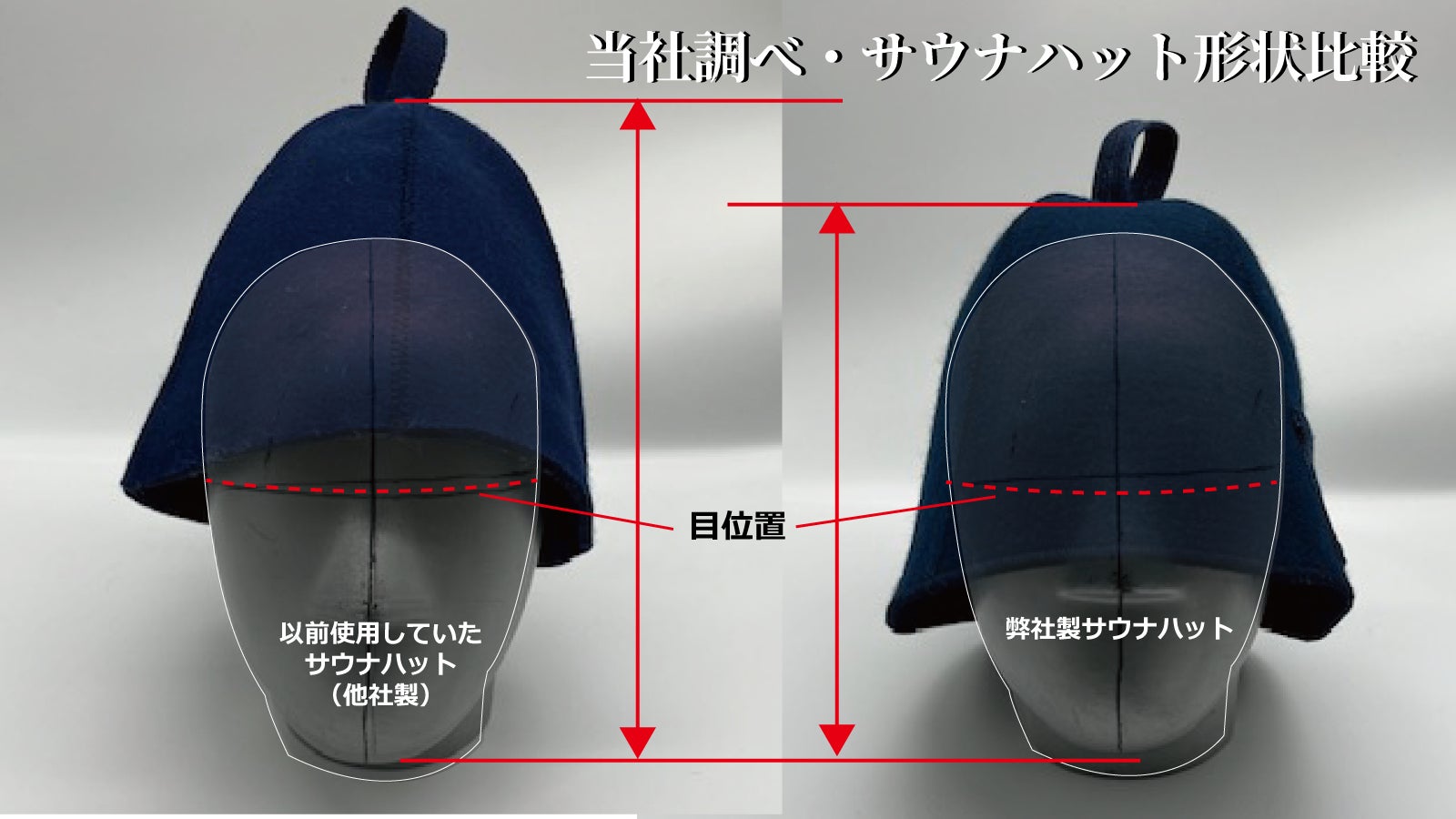 →従来の厚地のサウナハットでは、頭にのっかっている感じの商品が多いため、深さやフィット感を改良することで顔が見えそうで見えない、視野を確保しつつ、どこから見てもカッコよく、お洒落に見えるよう仕上げました。