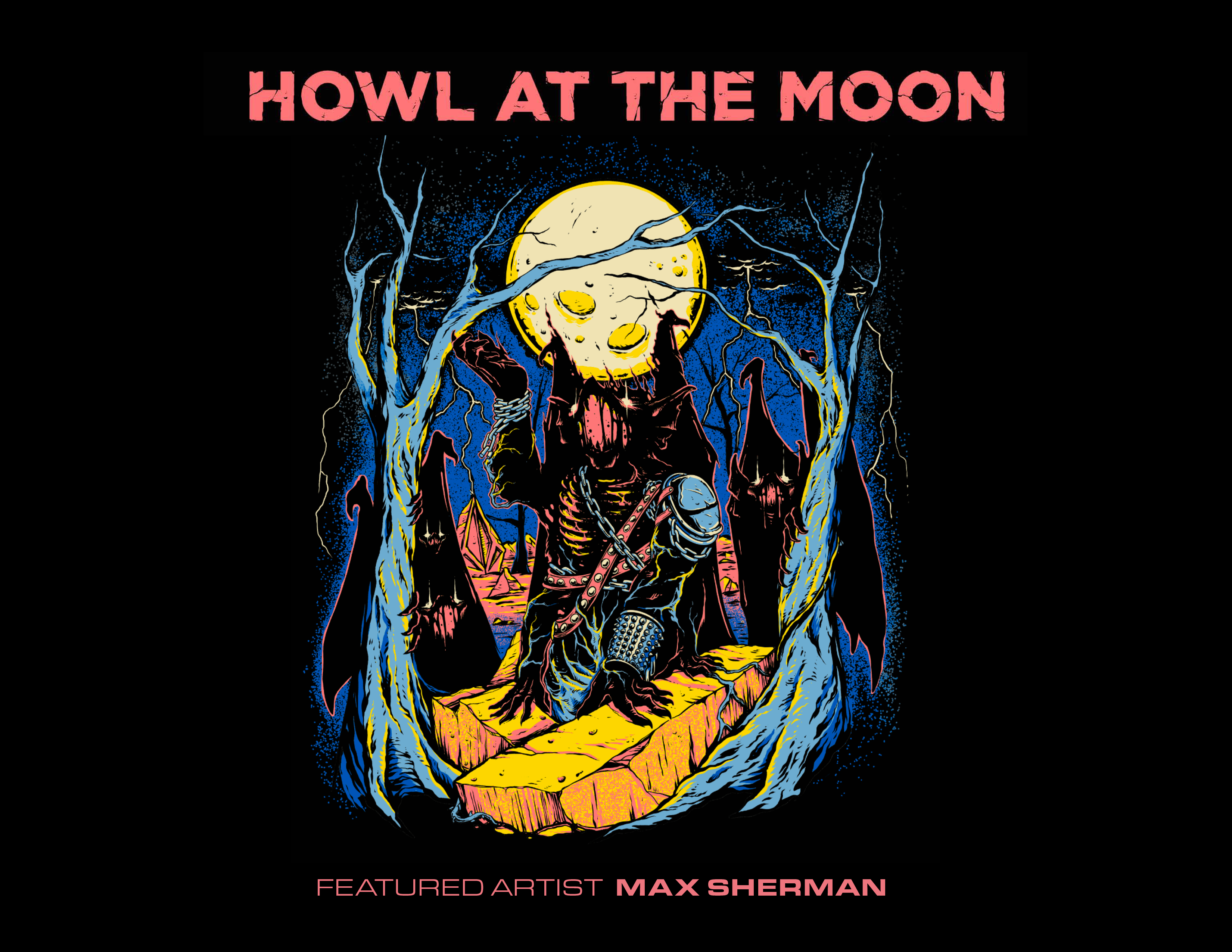 メイン州の海岸で生まれ育ったマックス シャーマンは、幼い頃から絵を描き始め、10代の頃はビーチでTシャツにエアブラシアートをしたり、絵の世界に没頭していました。またその頃マックスはスケートボードのグラフィックとヘヴィメタルに夢中になり、のちにホラー映画やホラーアートにも、のめり込みました。