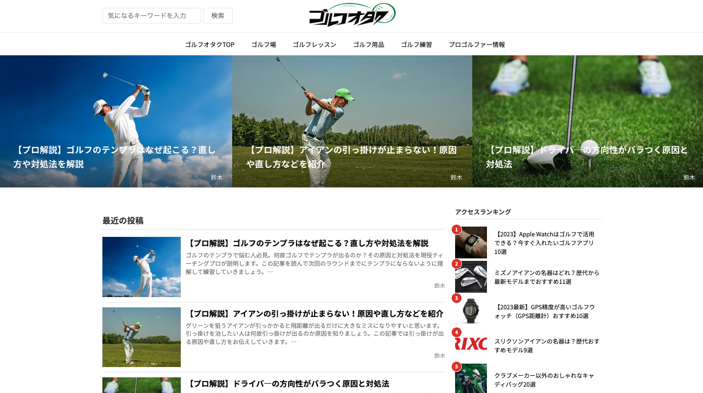 ゴルフが上達する方法を知りたい、おすすめのゴルフ用品を知りたいなど、ゴルフに関する疑問や不明点は「ゴルフオタク」を参考にされてください。
