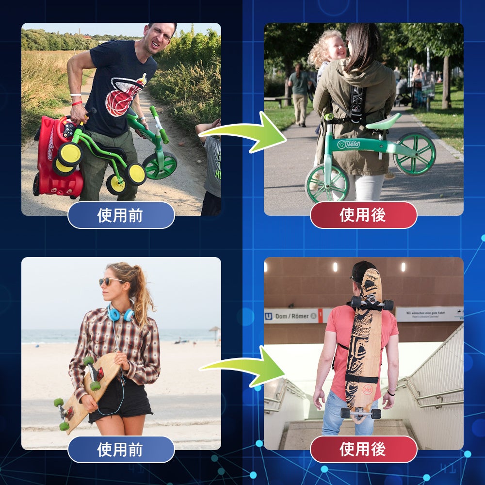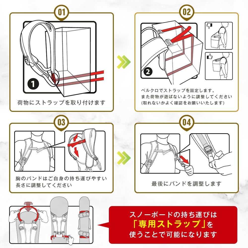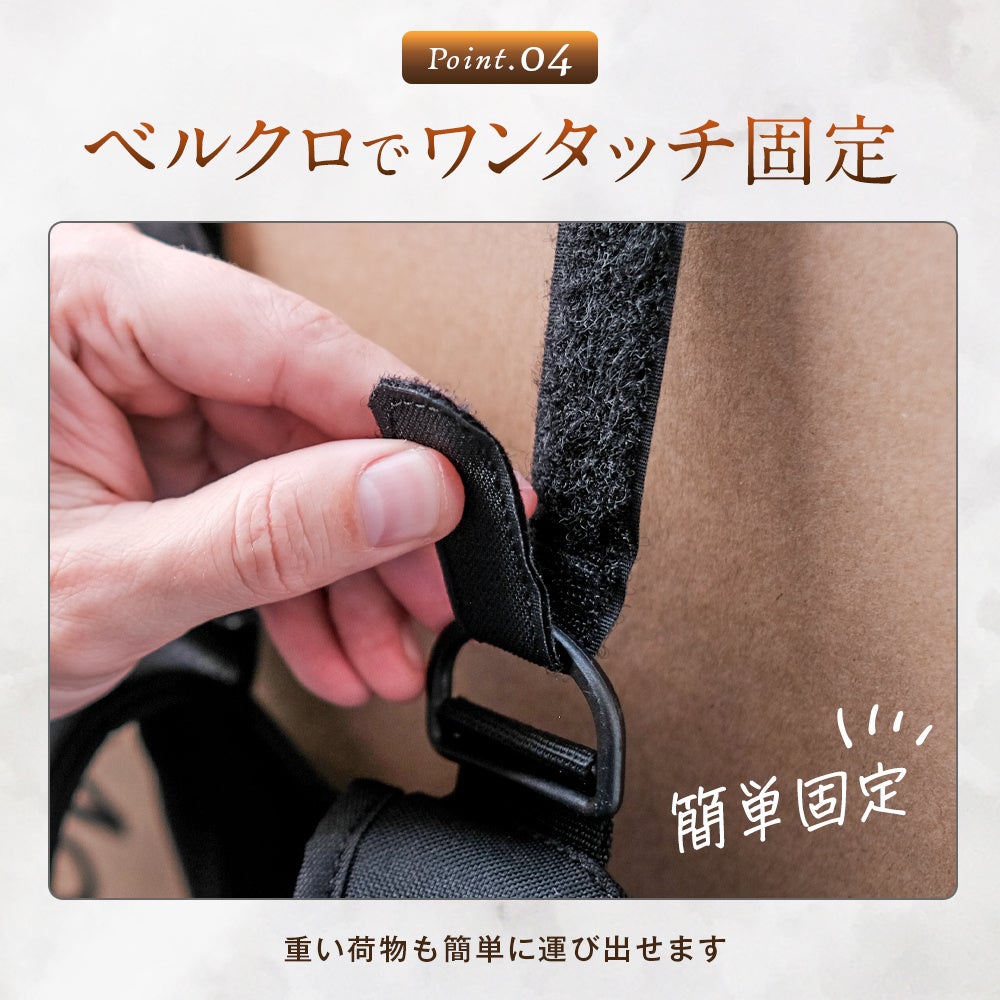 ダンボールやクーラーボックス、ボードを背負って運べる