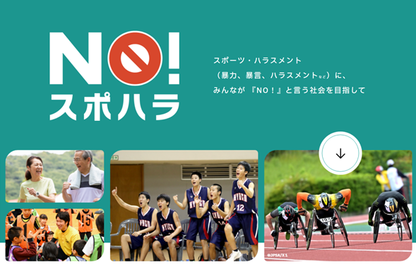 ※「NO!スポハラ」活動とは: スポーツ界における暴力・暴言、ハラスメント等の不適切行為をなくすことを目指し、JSPO、日本オリンピック委員会(JOC)、日本パラスポーツ協会(JPSA)、日本中学校体育連盟、全国高等学校体育連盟、大学スポーツ協会(UNIVAS)の6団体共同にて、本年度から実施しています。 |