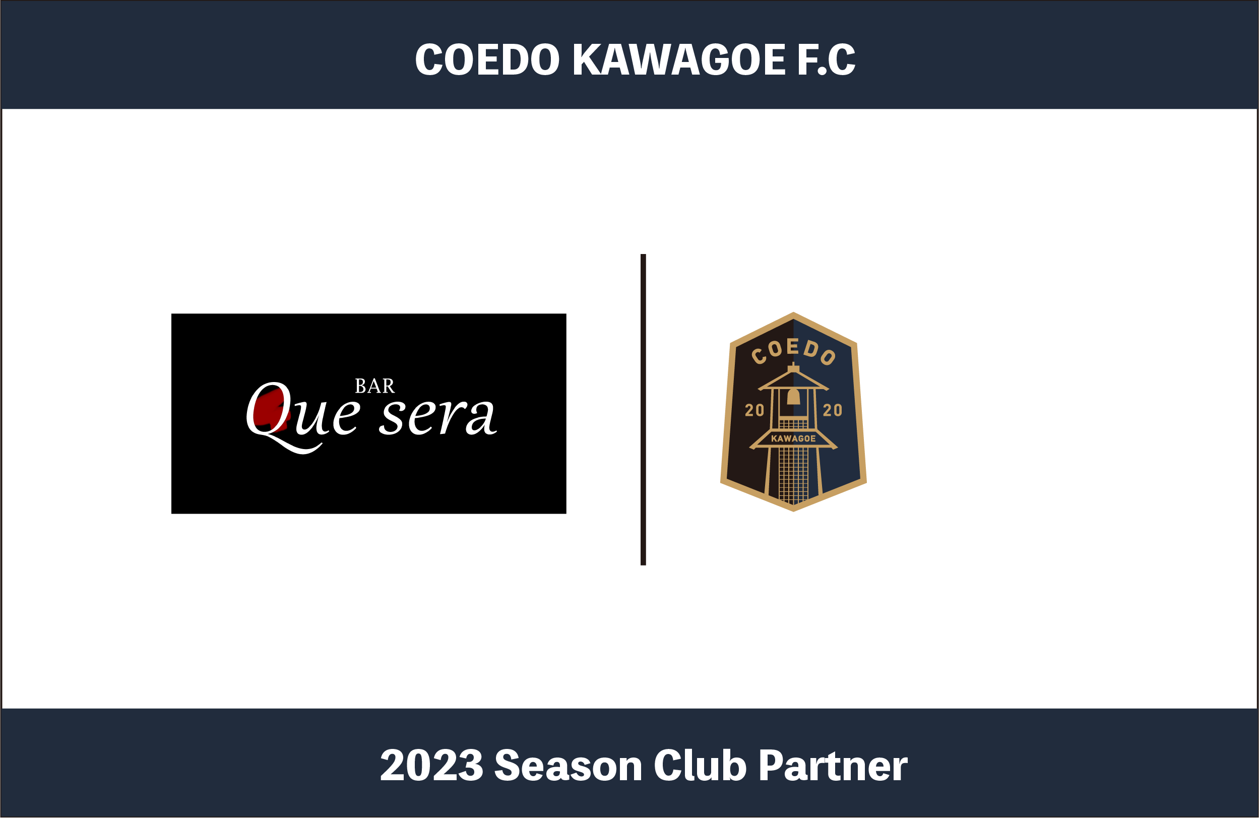 COEDO KAWAGOE F.Cを運営するCOEDO KAWAGOE F.C株式会社(埼玉県川越市、代表取締役 有田和生)は、ノスタルジックな空間で、洗練されたカクテルを楽しめるバー「BAR Que sera」(埼玉県川越市、田坂行英)と2023シーズンのクラブパートナー契約を締結したことを発表いたします。