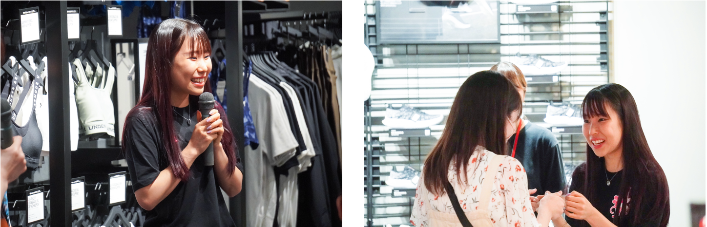 当日は、トークセッションからスタート。集まったお客様から大きな拍手が鳴り響く中、和やかなムードで始まりました。トークセッションでは抽選で当選した約20人の方から、競技やプライベートに関する質問にお答えいただきました。
