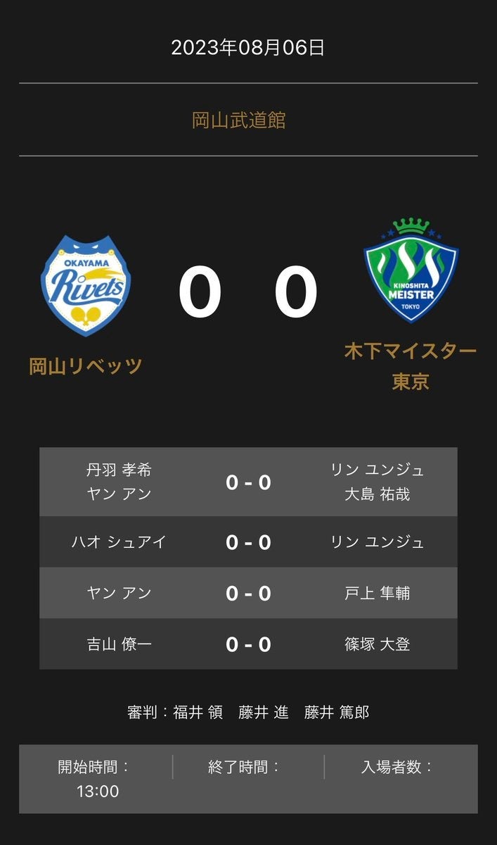 ホームプレスリリース ノジマTリーグ2023-2024シーズン公式戦 8月6日(日)開催 岡山リベッツ vs 木下マイスター東京 対戦オーダー発表 2023年08月06日 13時07分 公開|スポーツマニア編集部プレスリリース 一般社団法人Tリーグのプレスリリース ノジマTリーグ2023-2024シーズン公式戦 8月6日(日)13:00試合開始、岡山武道館にて開催の 岡山リベッツ vs 木下マイスター東京の対戦オーダーを発表いたします。