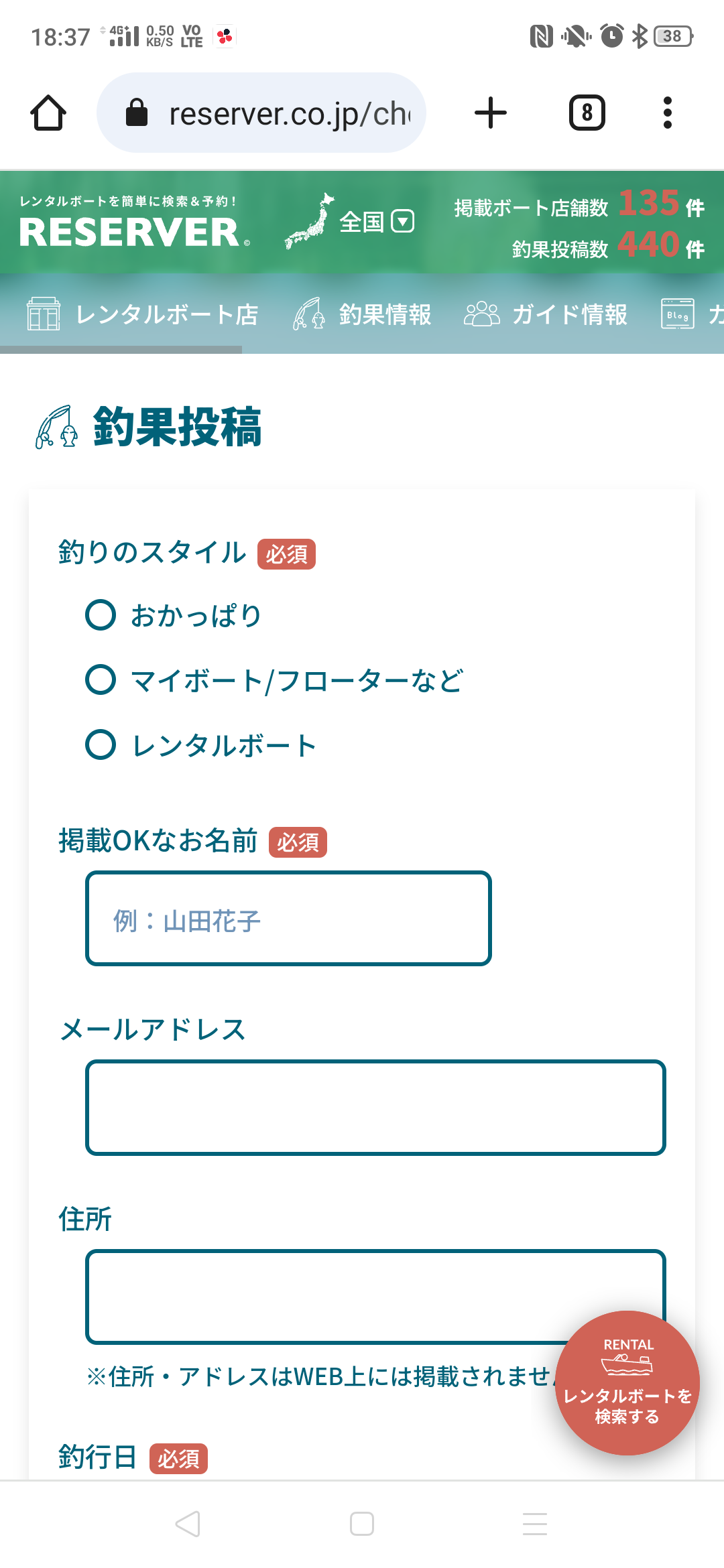 ・ガイドの検索が各ボート店のHPを見ないと探せない