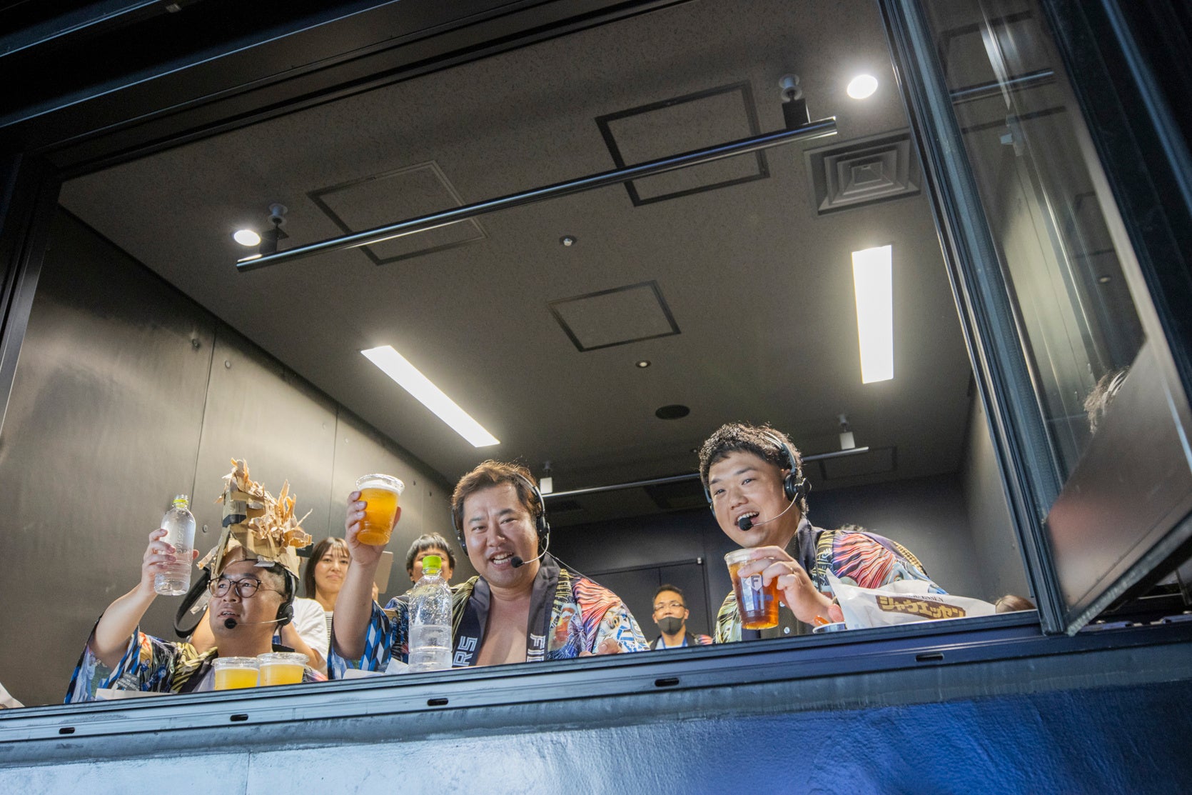 13時に試合が始まるとこの副音声へのアクセスも一気に増加。エスコンフィールドで人気のドリンクやフードがブースに届き、それに舌つづみを打ちながらテンションがアップした3人。否応なしにトークも盛り上がります。OB谷口さんだからこそ話せるファイターズを始めとする選手の裏情報、新球場ならではの魅力といった話題に黒瀬・安村は興味津々。