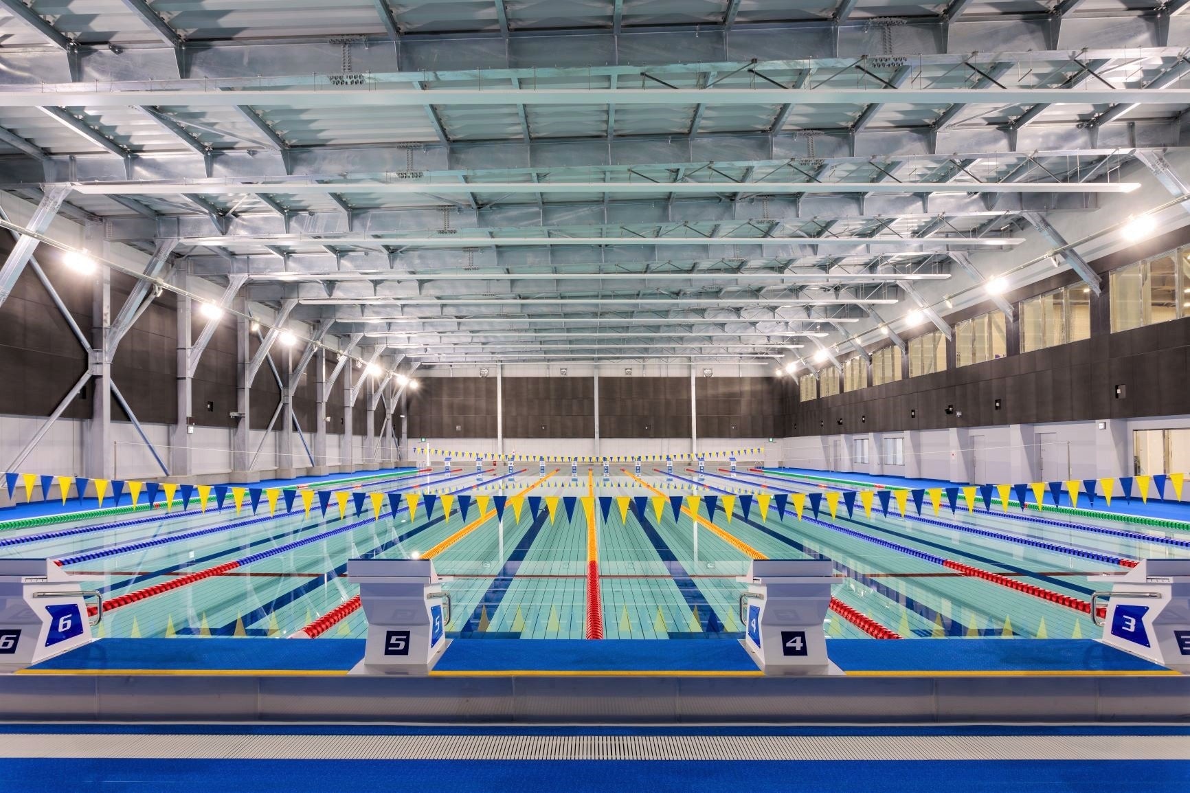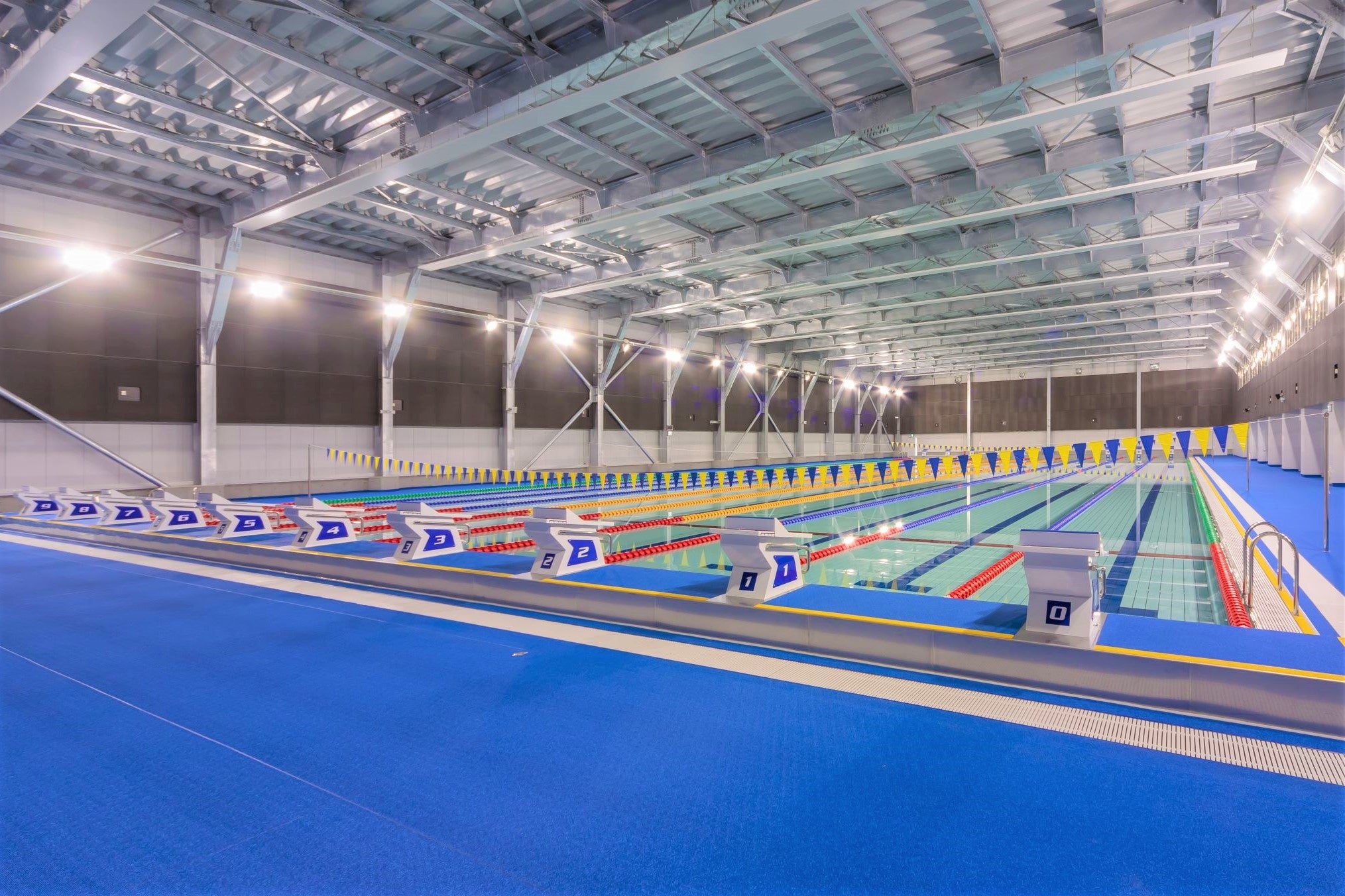 50m×25m、10レーンの屋内プールを整備しました。国内一般プール・AAを公認取得予定で、日本水泳連盟の主要大会を開催することが可能となります。また、可動床を採用し水深0~2.25mまで8段階で深さを設定できます。リハビリテーションから水球競技まで、多様なニーズに対応します。
