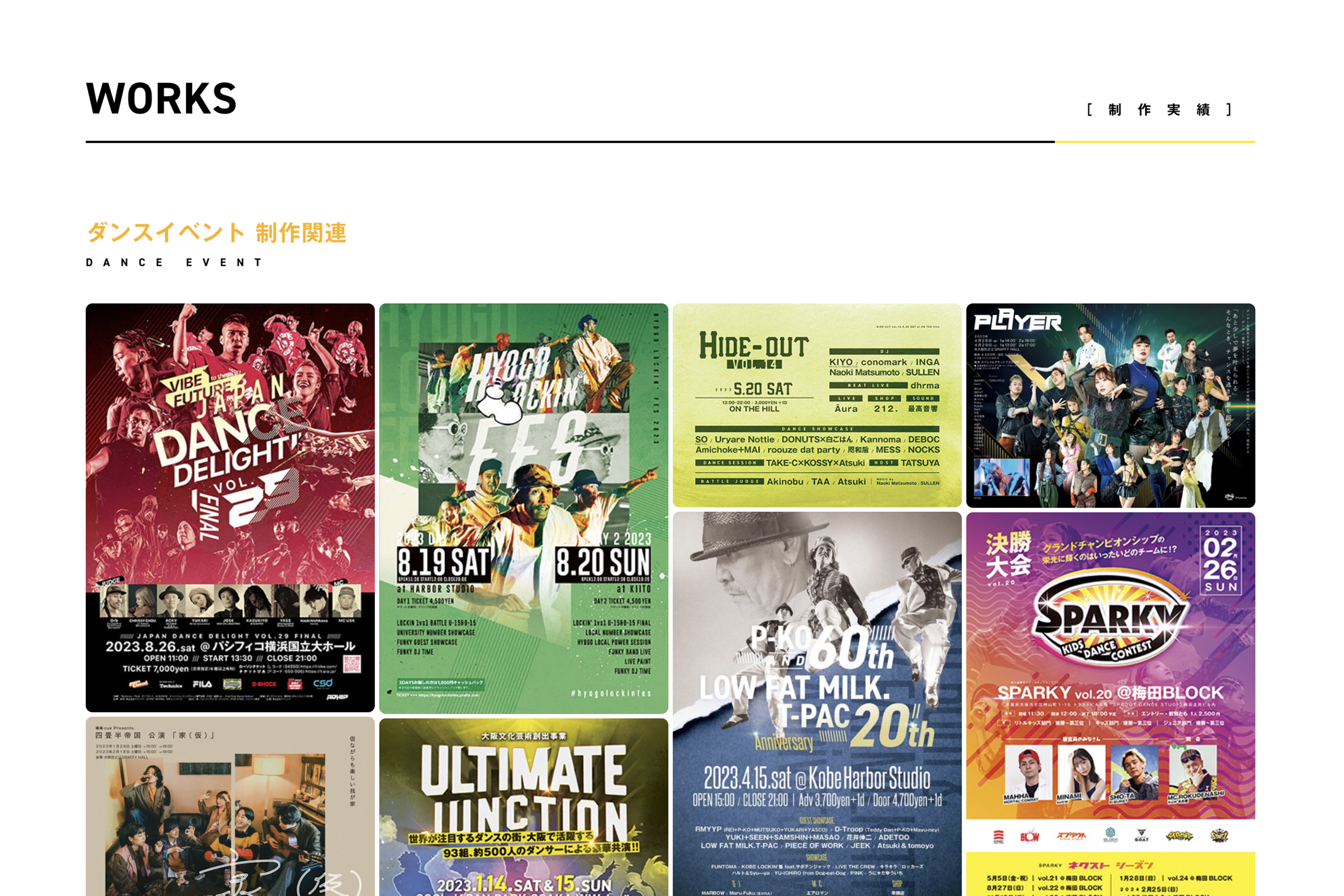 ダンスイベントやスタジオ関連のデザイン(ロゴ・チラシなど)を、業界のノウハウを元に、広報的な視点から制作・提案を行います。
