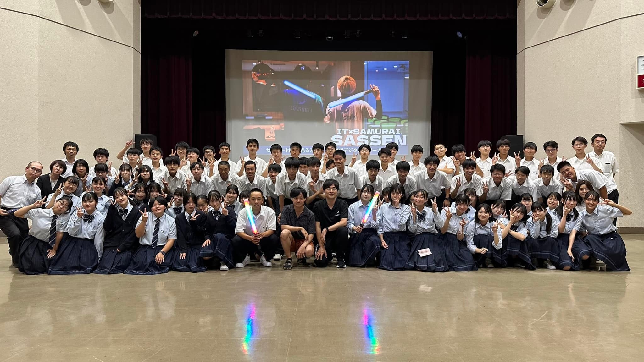 2023年7月31日、流山生涯学習センサーにて次世代デジタルチャンバラ「SASSEN」の体験講義を実施。約80名の八幡高校生にプレーしていただきました。