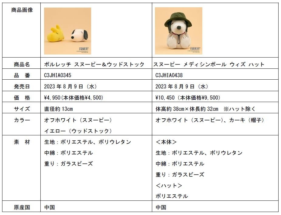 なお、「ボルレッチ スヌーピー&ウッドストック」「スヌーピー メディシンボール ウィズ ハット」を含む、一部のアパレルやアクセサリーは、阪急うめだ本店(大阪府大阪市北区)で8月9日(水)から開催される「うめだスヌーピーフェスティバル2023」に先行して登場します。