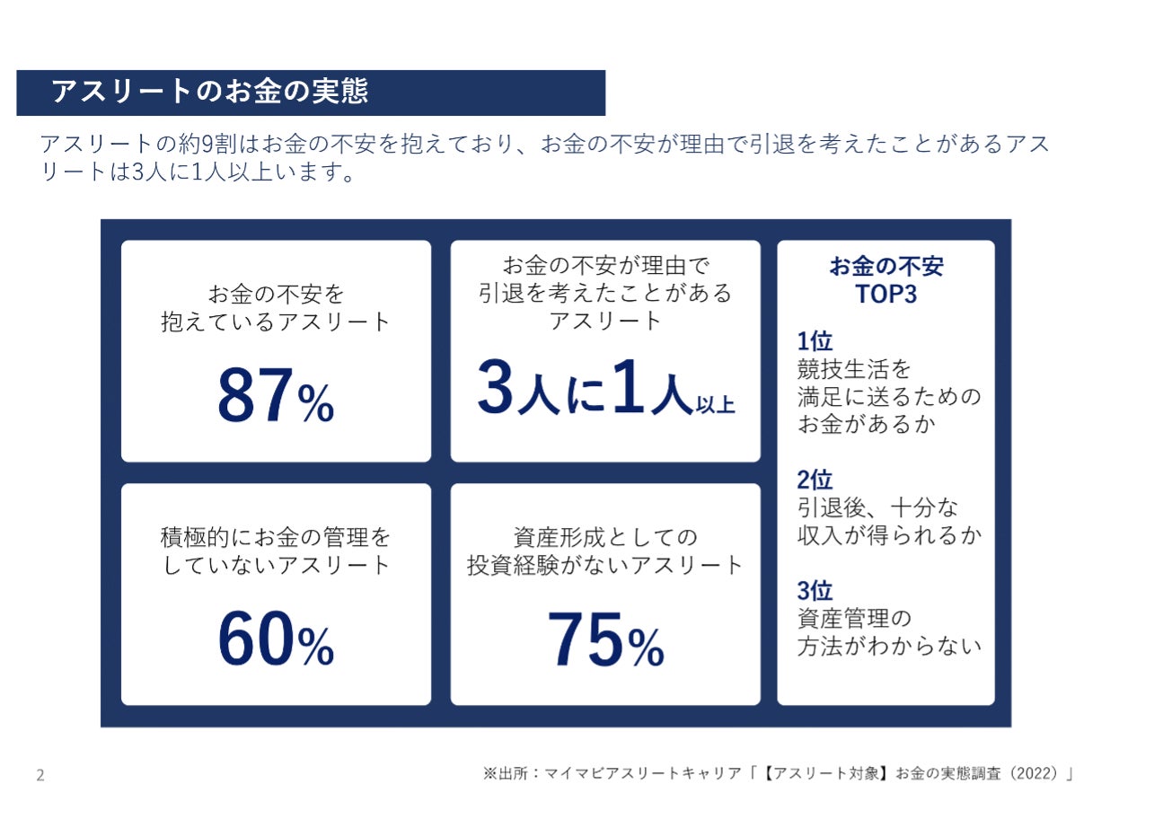 アスリートの皆さんが競技に没頭しながらも、自らのキャリアをサポートしてくれる新たな仕組みが今回、世に生み出されることになりました。