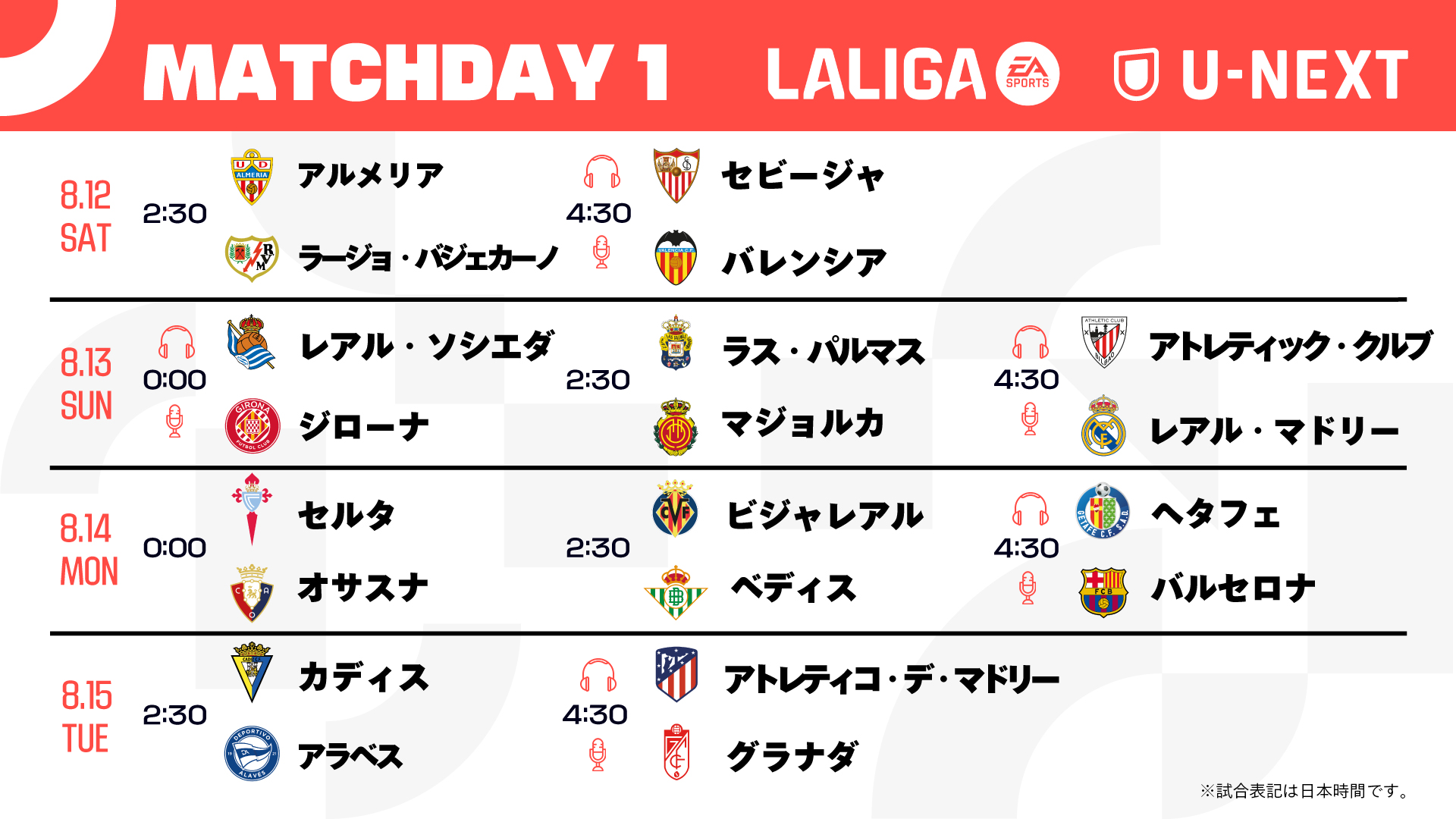 ※以降のスケジュールや配信情報の変更についてはU-NEXT公式Twitter (X)サッカーアカウント(@unext_football)より随時発信いたします。