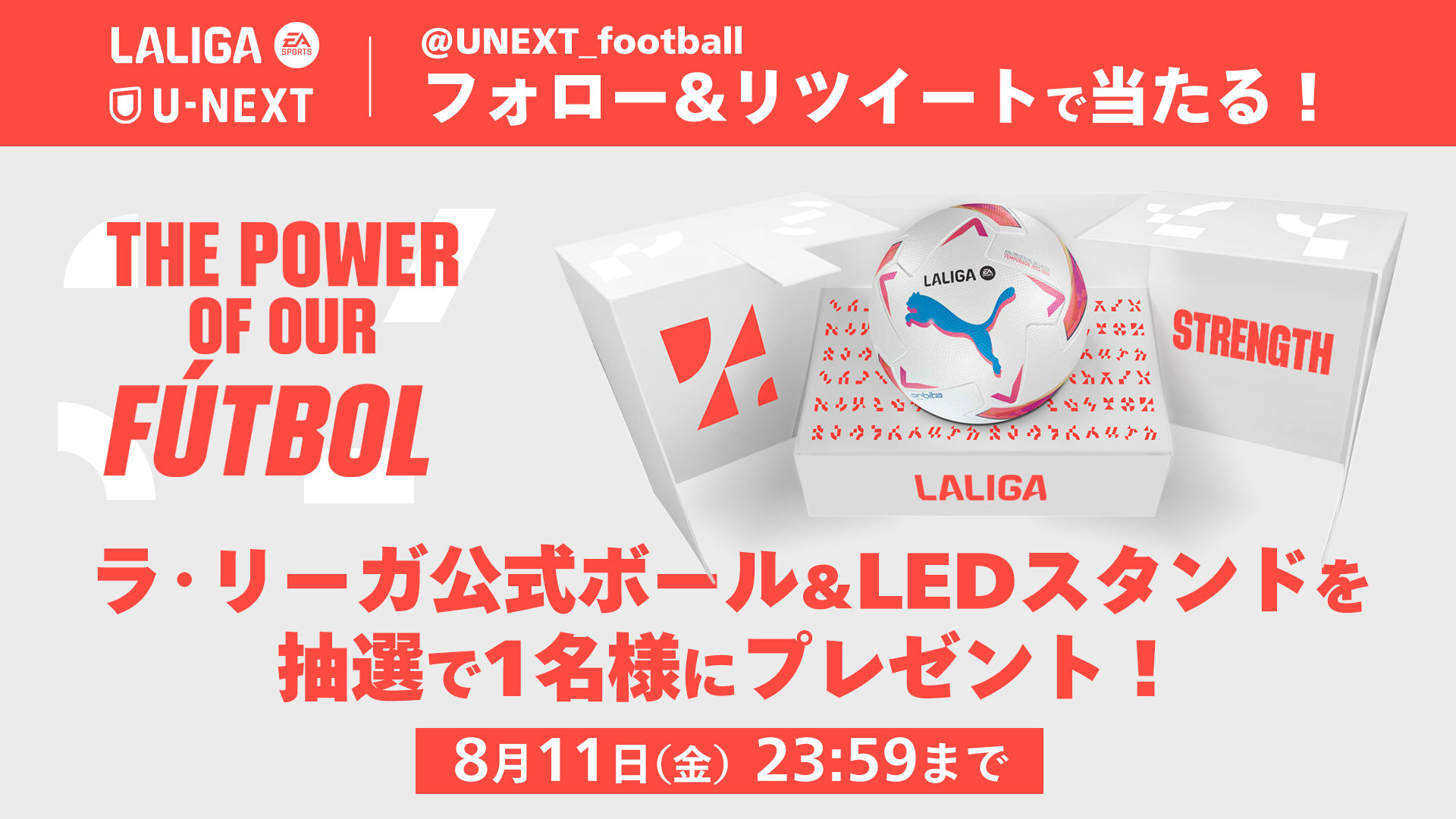 また、U-NEXTでのラ・リーガ配信を記念して、今シーズンの試合ボールが当たるTwitter (X)キャンペーンを実施いたします。プレゼントキャンペーンは、U-NEXTサッカー@公式Twitter (X)アカウント(@unext_football)をフォローのうえ、該当ツイートをRTすることで応募いただけます。ぜひご参加ください。