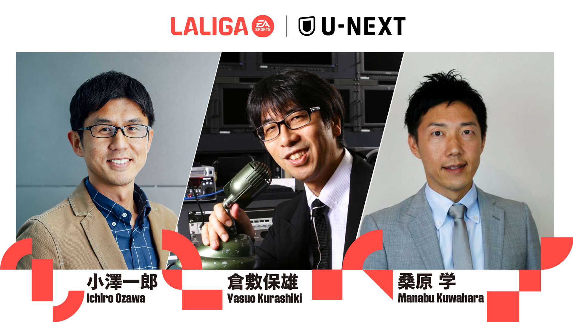倉敷保雄氏&小澤一郎氏&桑原学氏がU-NEXT独占で実況・解説者に決定!コメントも到着!