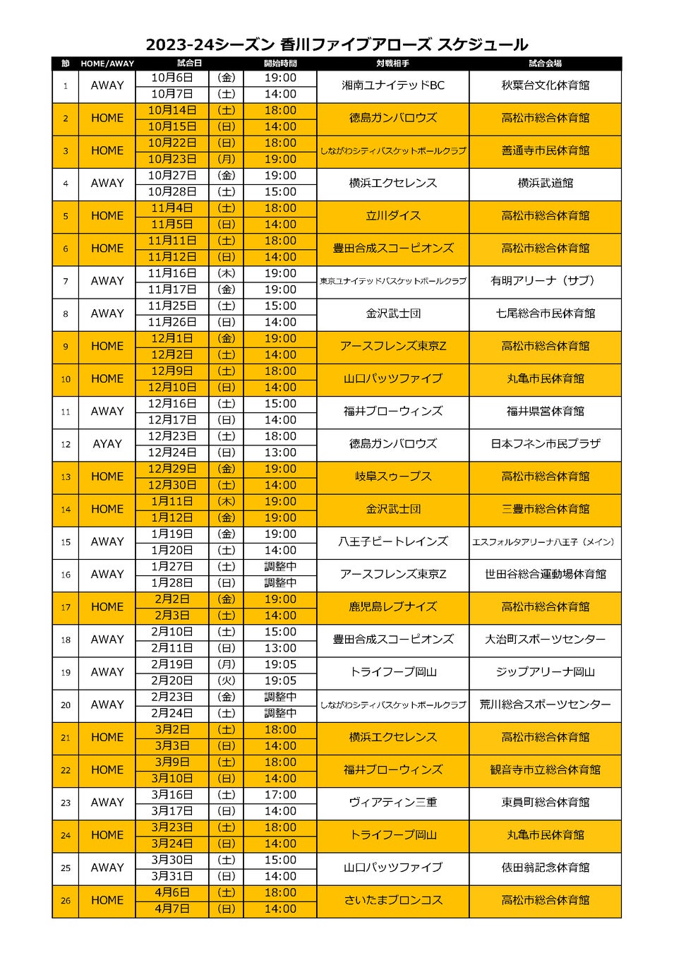 このたび、2023-24シーズンのスケジュールおよび試合時間が決定しましたので、お知らせいたします。