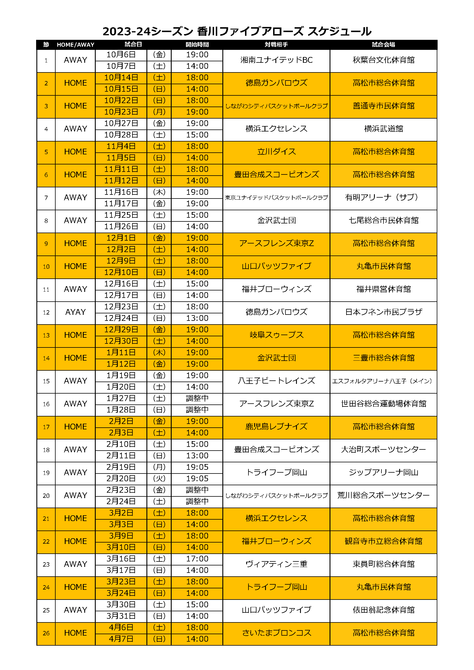 このたび、2023-24シーズンのスケジュールおよび試合時間が決定しましたので、お知らせいたします。