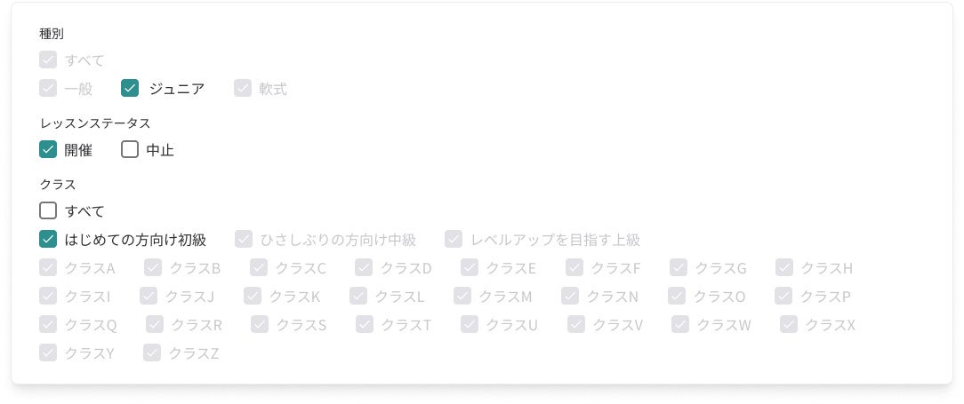 レッスン開催にともなう定期開催のクラス設定を行う場合に、予定設定がより簡単に行えるよう、表示項目を更新しました。