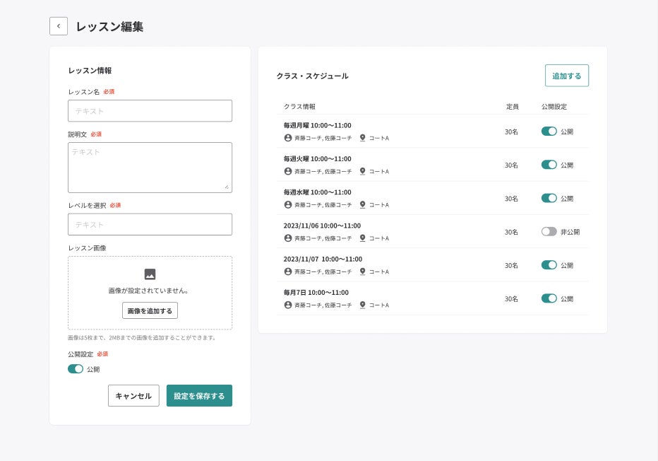 また、レッスン編集画面では、クラス・スケジュールが一覧表示されるようになりました。