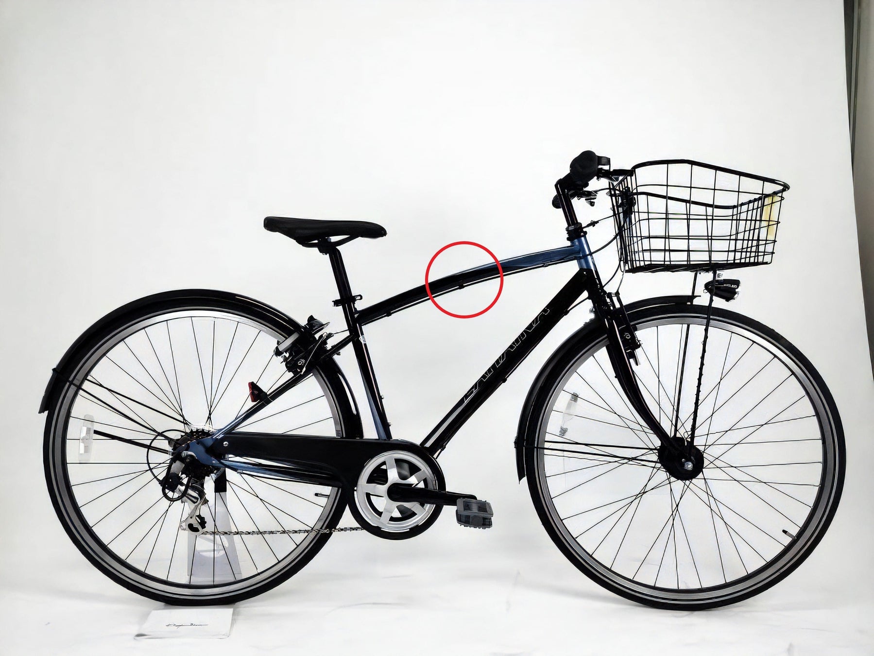 シティサイクル車体上部、赤丸内にキズ(キズは車体によって異なります)