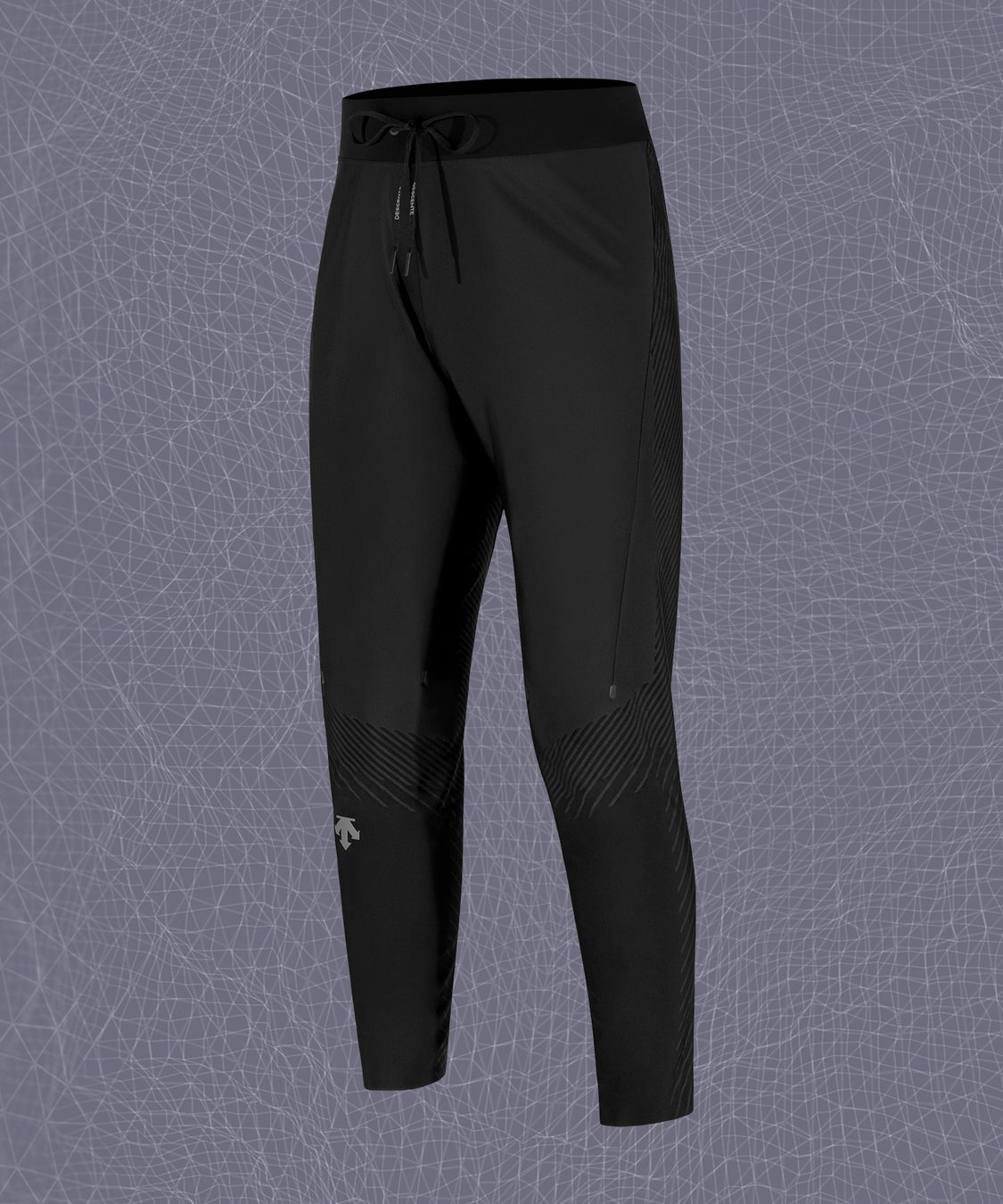 特徴:ジャケットと同様の動きやすさや機能性を持たせながら、寒さを感じやすいパンツ前面の大腿部は風を通しにくく、膝下からは足の運び方をよりスムーズにするために伸縮性を高める加工、パンツ後面は汗がたまりやすい膝裏を中心に通気性を高める加工を施しています。またパンツ特有の機能として、シューズが引っかからないように両裾にはトライアングル状のカッティングなどの機能的な仕様も付加しています。