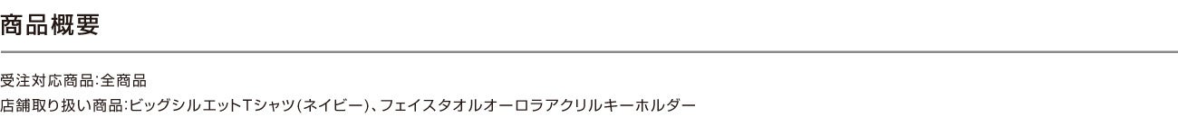 商品ラインナップはビッグシルエットTシャツ、フェイスタオル、オーロラアクリルキーホルダー、オーロラ缶バッジ、マグカップ、ハンディファン、クリアポーチの7種と盛り沢山のラインナップとなっております!