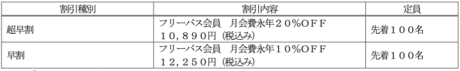 ① 早ければ早いほどお得な月会費が永年割引となる入会キャンペーンを実施