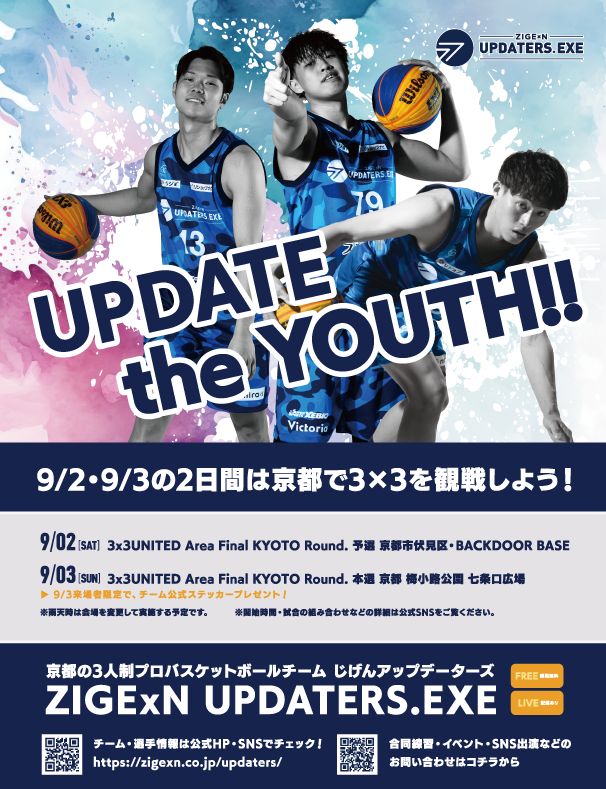 じげんアップデーターズの本拠地である京都府京都市にて開催される本大会は、西日本No.1を決定する「3x3UNITED PLAYOFF」への出場権をかけたシーズン最終ラウンドです。西日本各地から14の強豪チームが京都の街に集結します。