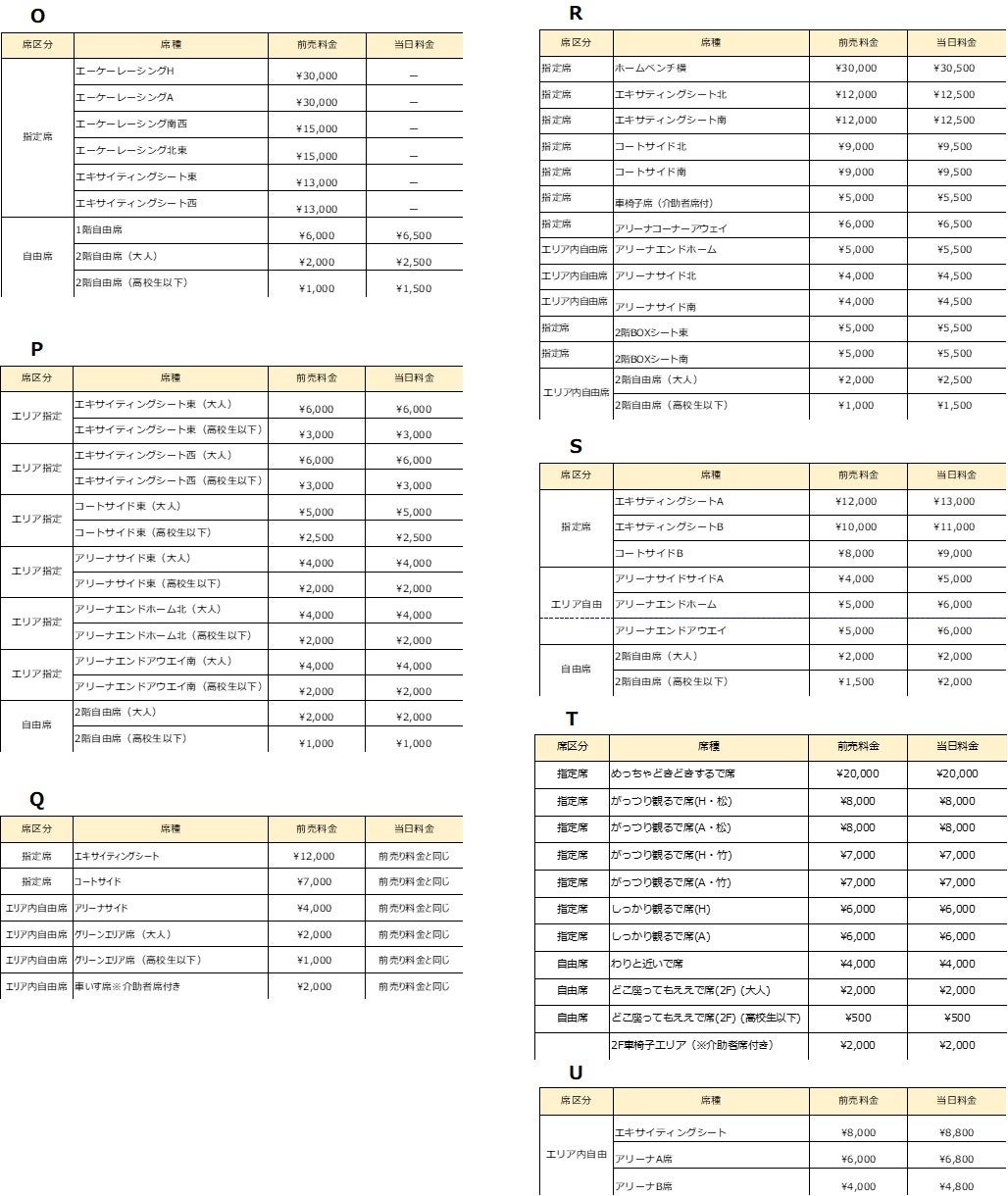 ・お付き添いの方はパイプ椅子でのご観戦となります。また同伴者が2名以上の場合は同様の席種をご購入ください。