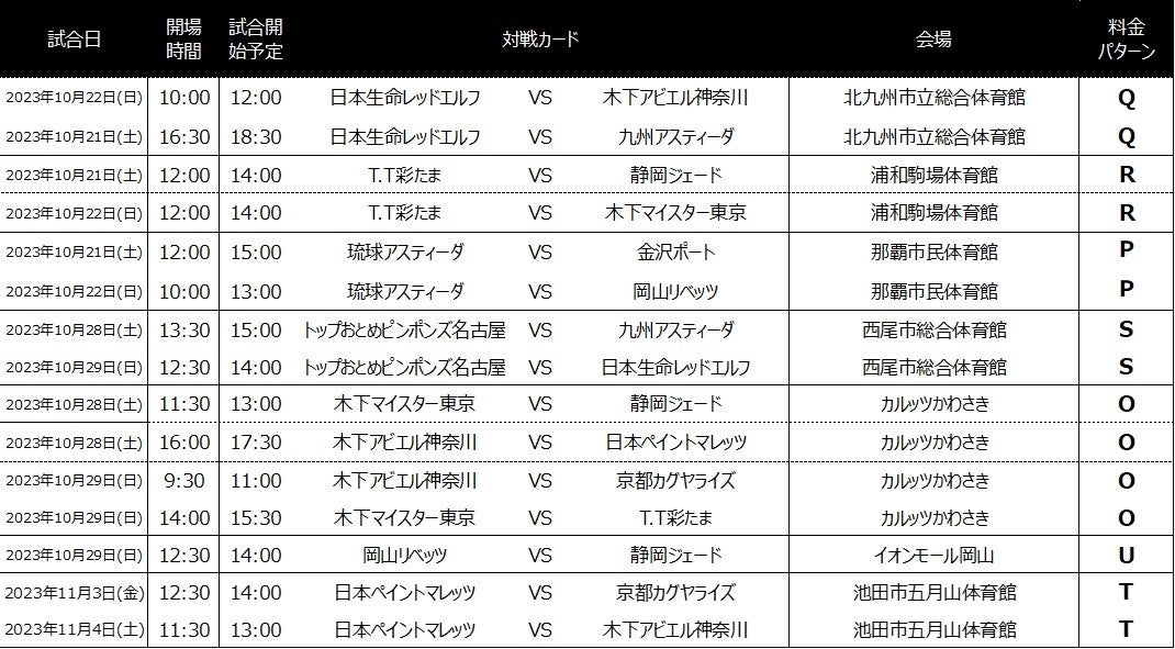 Tリーグでは、ノジマTリーグ 2023-2024シーズン 2023年10月開催の13試合、11月開催2試合に関してチケット販売スケジュールをお知らせいたします。