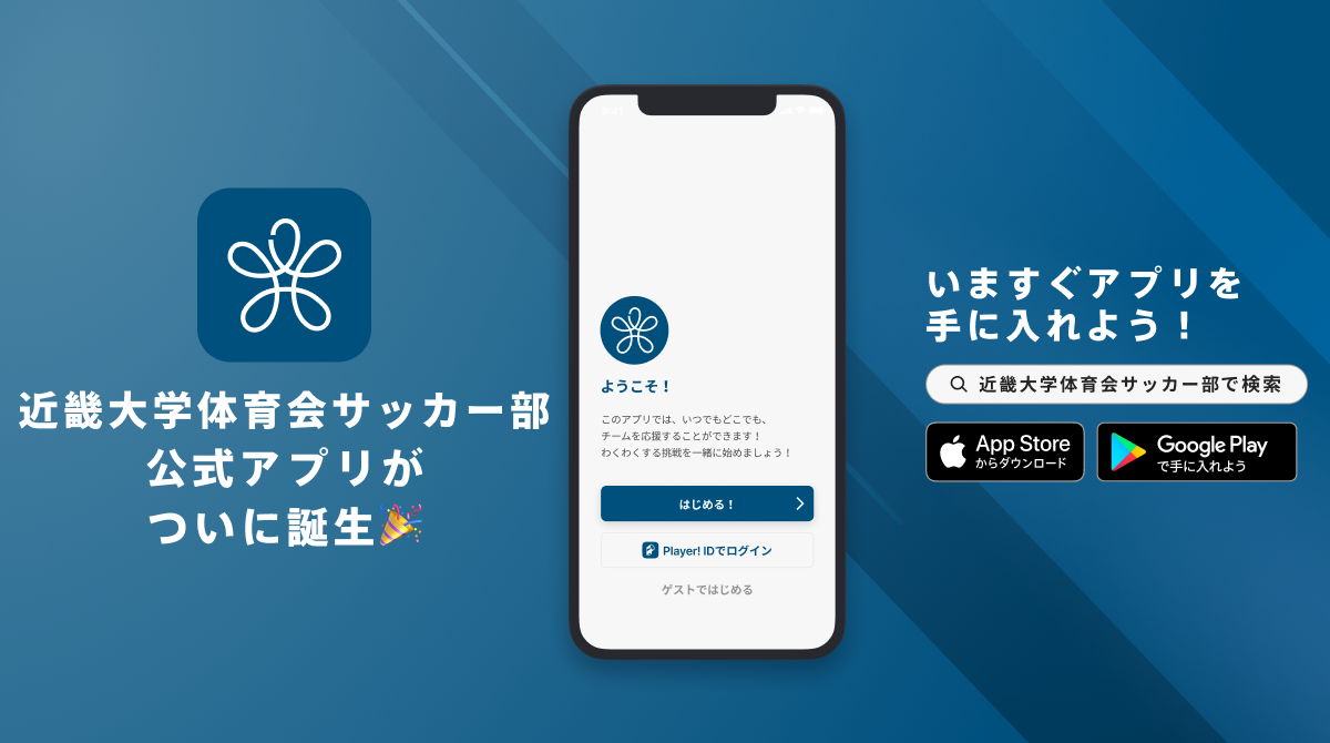 AppStoreもしくはGooglePlayで「近畿大学体育会サッカー部」と検索!