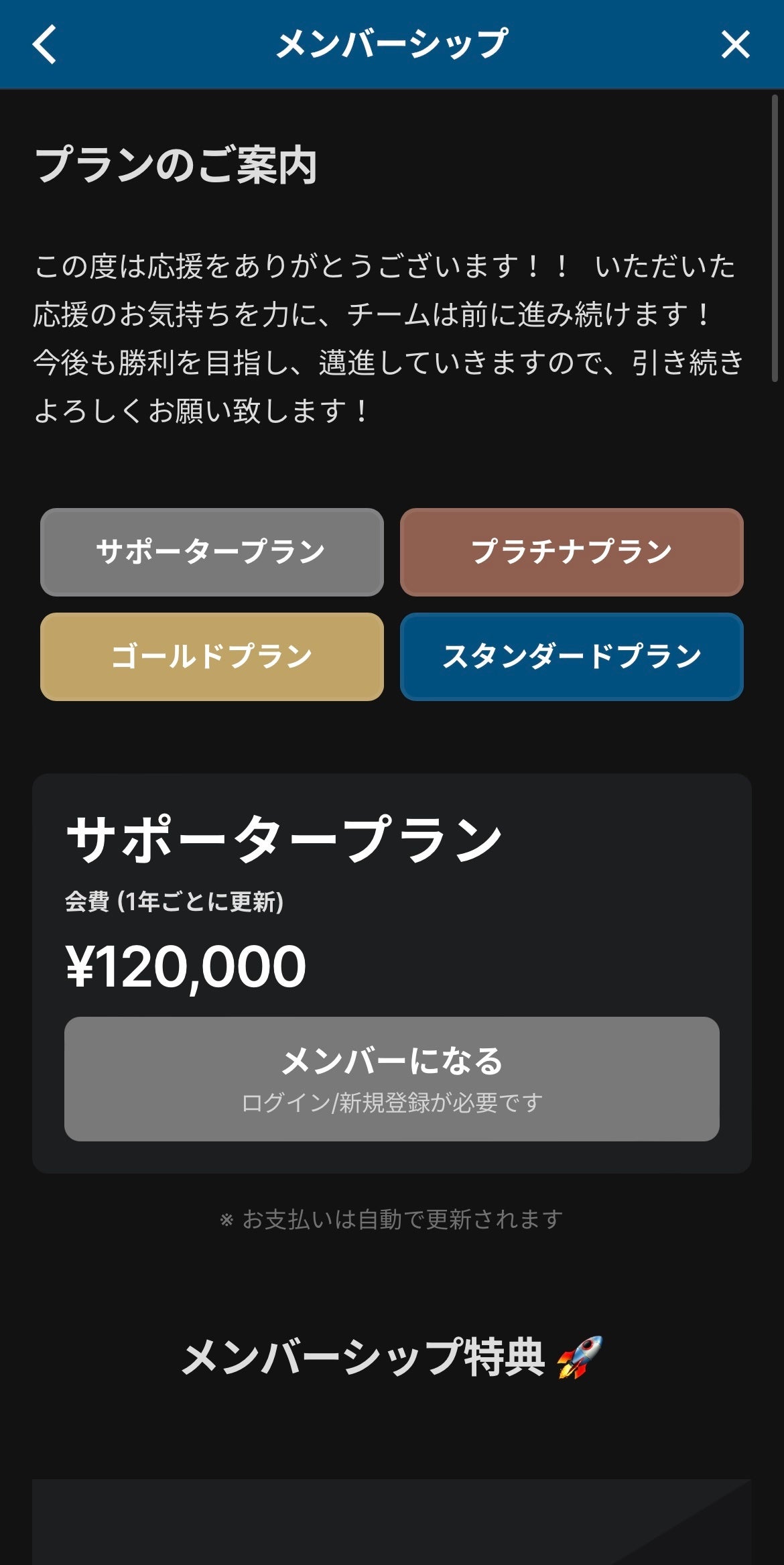 メンバーシップ機能からファンクラブ会員になって頂くと、チームから特別なグッズをお届けします!