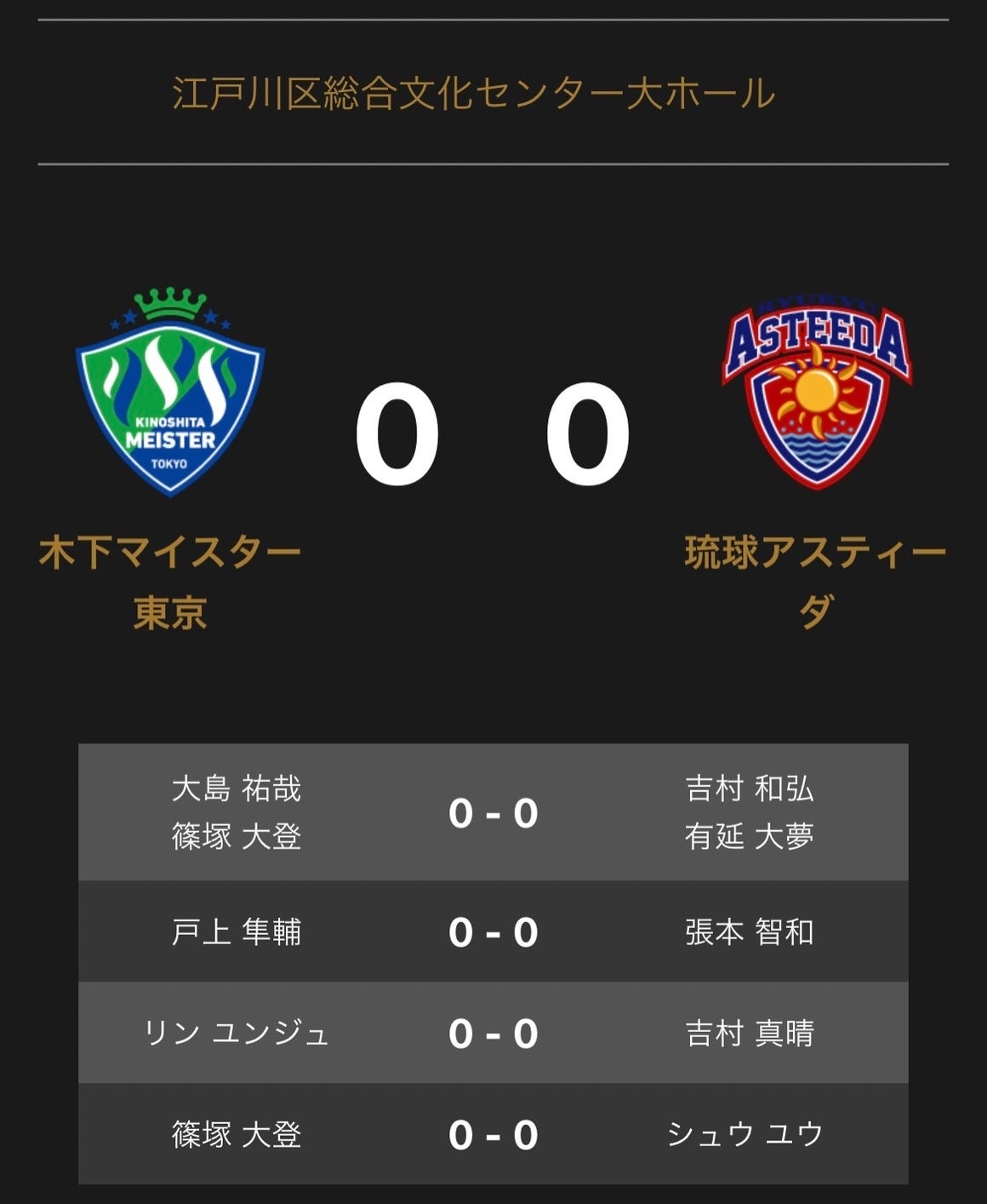 ノジマTリーグ 2023-2024シーズン 公式戦 8月12日開催の「木下マイスター東京 vs 琉球アスティーダ」のオーダーを発表いたします。