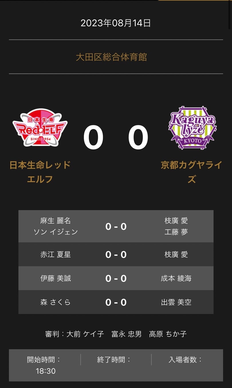 ノジマTリーグ 2023-2024シーズン 公式戦 8月14日開催の「日本生命レッドエルフ vs 京都カグヤライズ」の対戦オーダーを発表いたします。