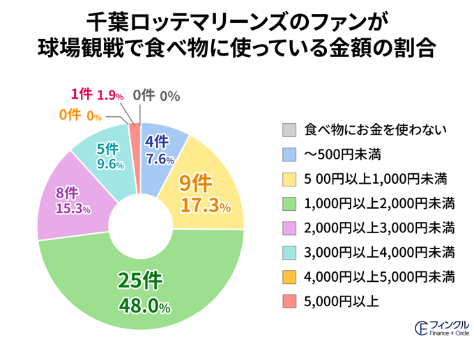 千葉ロッテマリーンズの本拠地のZOZOマリンスタジアムでは、選手のコラボメニューのフードが多いことから、食べ物に使うお金の割合が多かったのでしょう。
