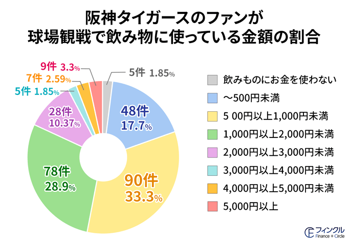 阪神タイガースの球団ファンは、飲み物に【3,000円以上使っている】と回答した人が、