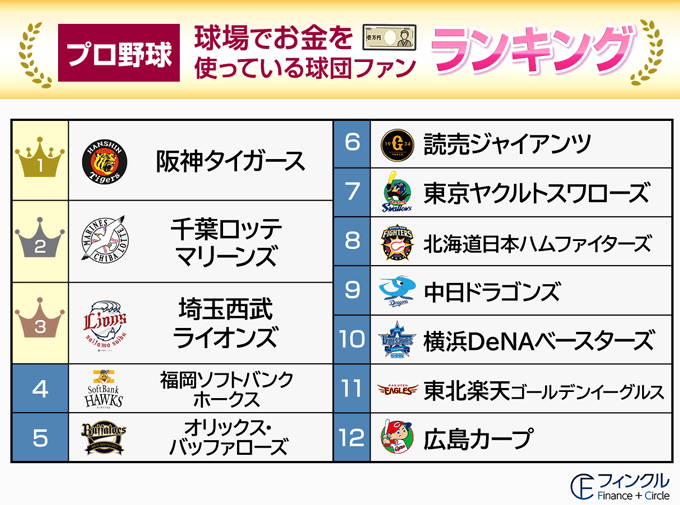上記のランキングの詳細は(https://www.plus1-one.co.jp/fincle/enquete/baseball_stadium_money/)の記事で紹介しています。