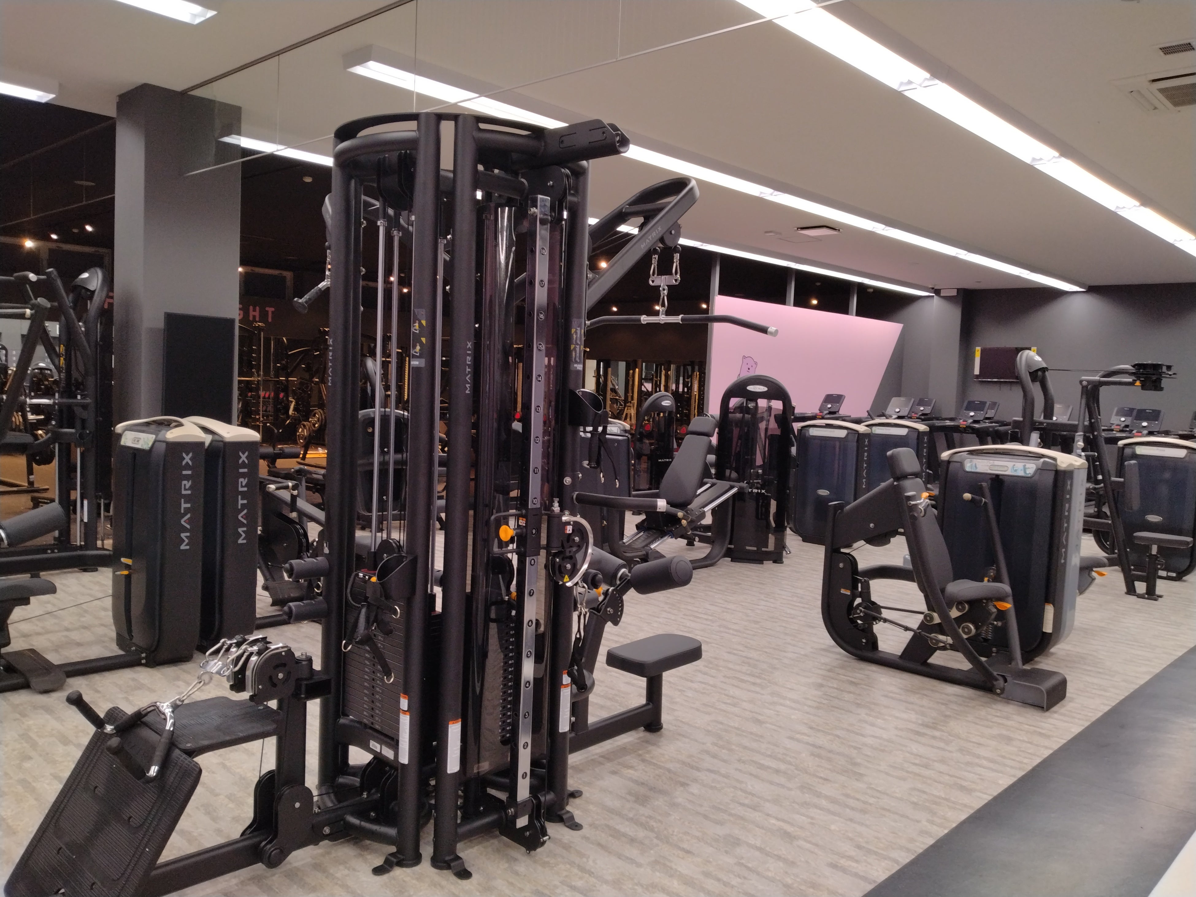 MATRIX製の筋トレマシンを設置。4スタックマシン(4方向同時利用可能)など、1号店目には無いマシンを導入いたしました。