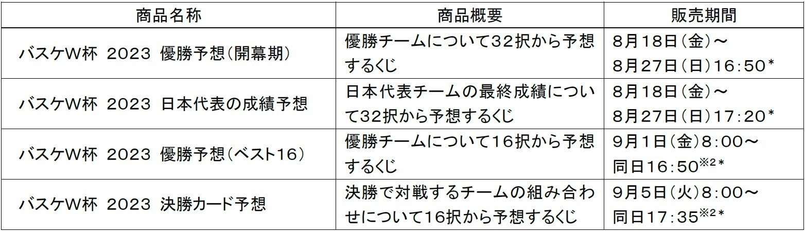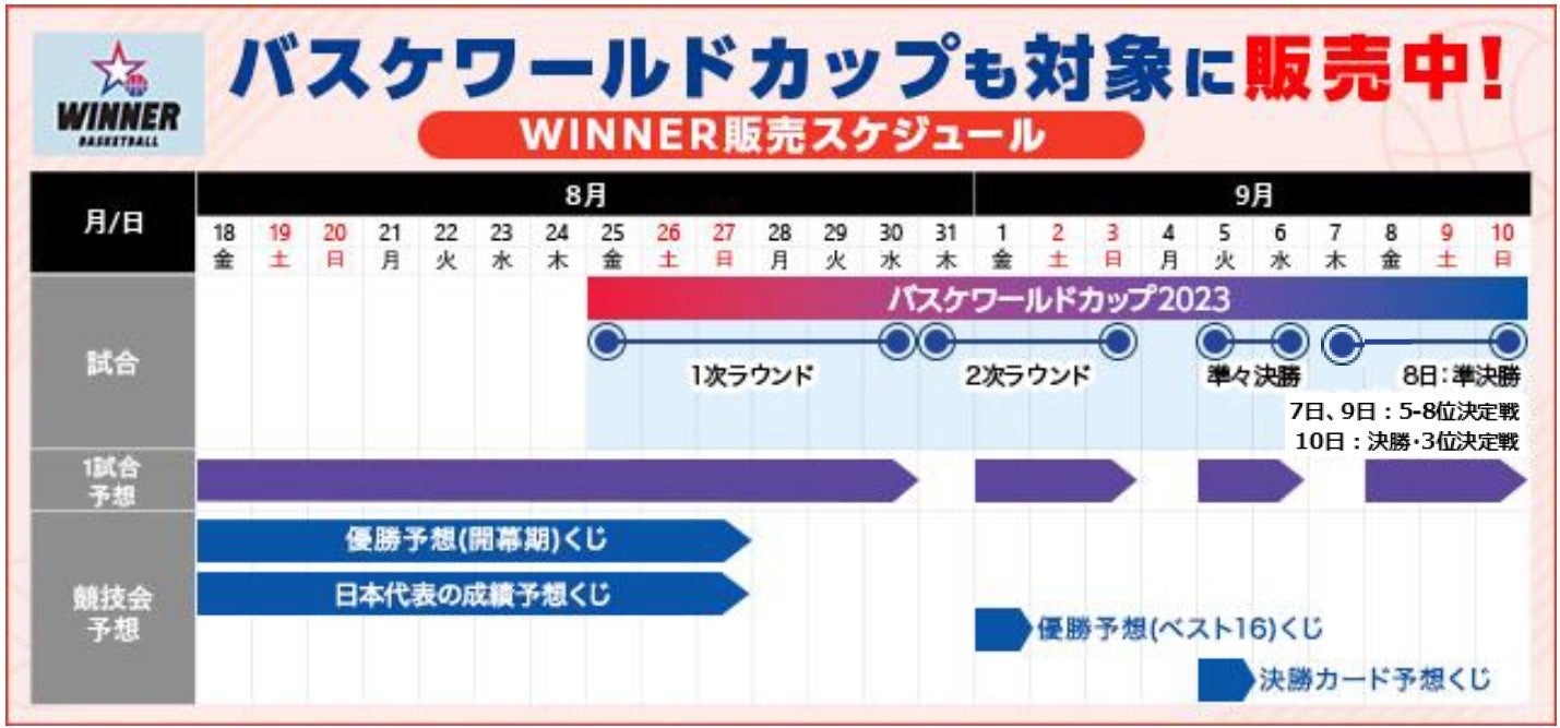 バスケットボールワールドカップを対象とした「WINNER」の販売予定