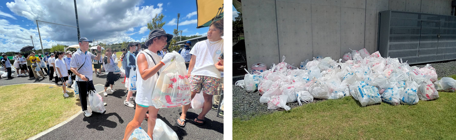 千葉県は三方を海に囲まれ、海と密接なつながりを持っています。その中でも会場となった幕張海浜公園は、JR京葉線・海浜幕張駅からも近く、地元住民にとって身近な憩いの海となっております。大会前日には花火大会も行われ、多くの人が花火を楽しんだ一方、例年花火大会で発生するごみが課題となっています。スポGOMI ワールドカップ 千葉 STAGEでは、海に面した海浜公園を清掃することで海に流出してしまうごみを少しでも防ぐことができました。今大会は参加者の半数近くは中学生や高校生など学生が参加したことも特徴的でした。
